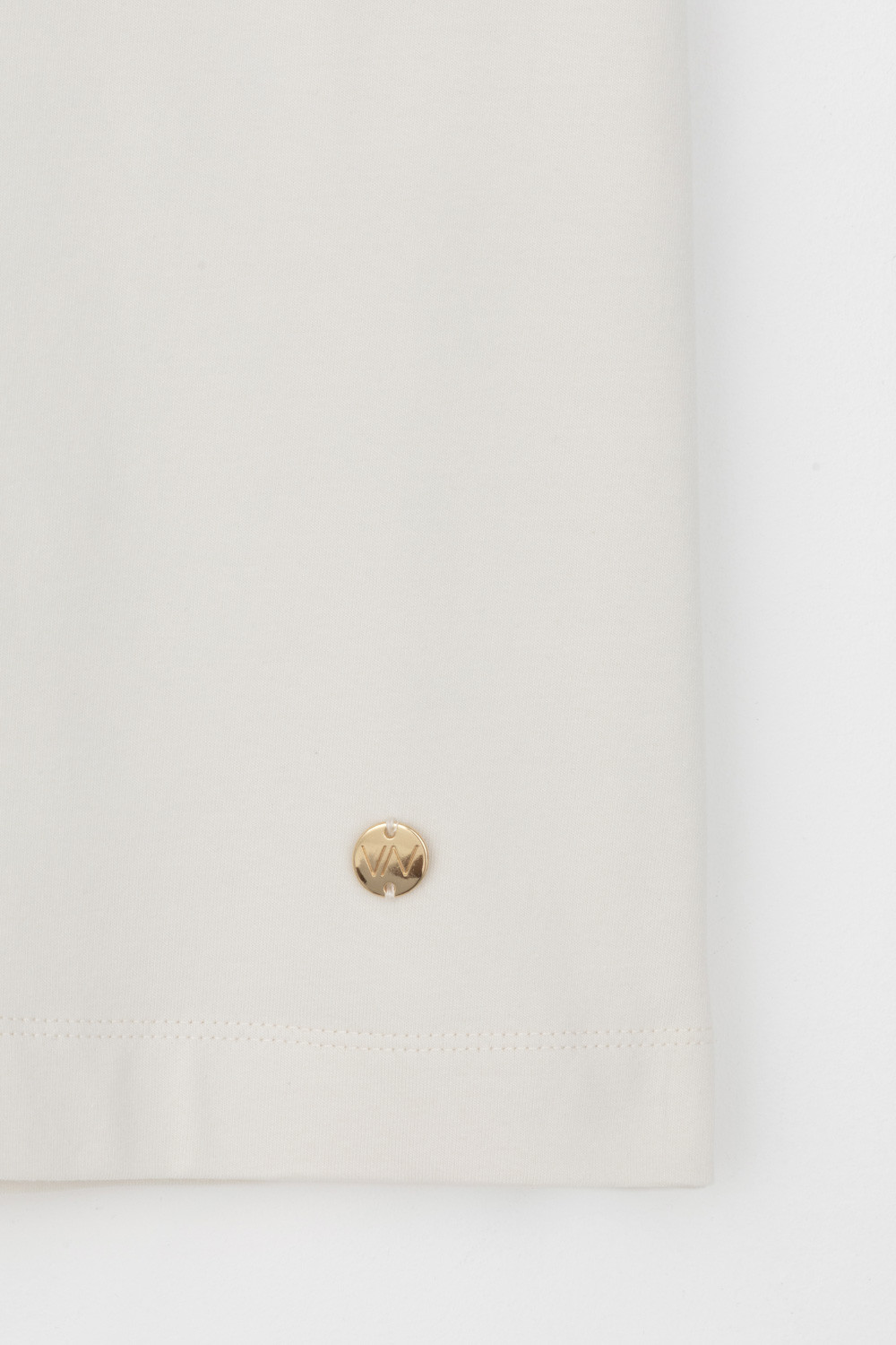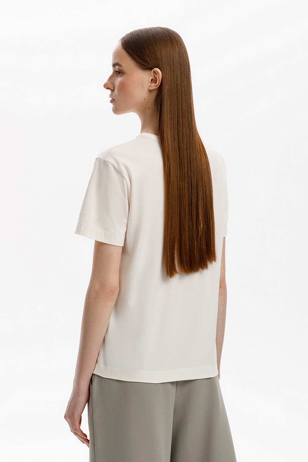 Футболка прямого силуэта из высококачественного гребенного хлопка с добавлением эластана. Мягкий на ощупь принт выполнен из водных красок, что обеспечивает устойчивость к многократным стиркам.
