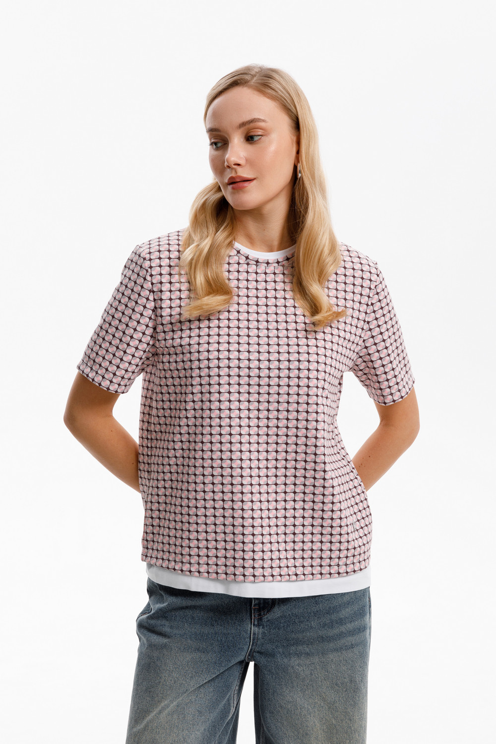 Футболка прямого силуэта, изготовленная из премиального трикотажного полотна DOUBLE FACE. Мягкий на ощупь трикотаж выполнен из высококачественной гребенной пряжи, а его яркий графический дизайн добавляет летнего настроения.