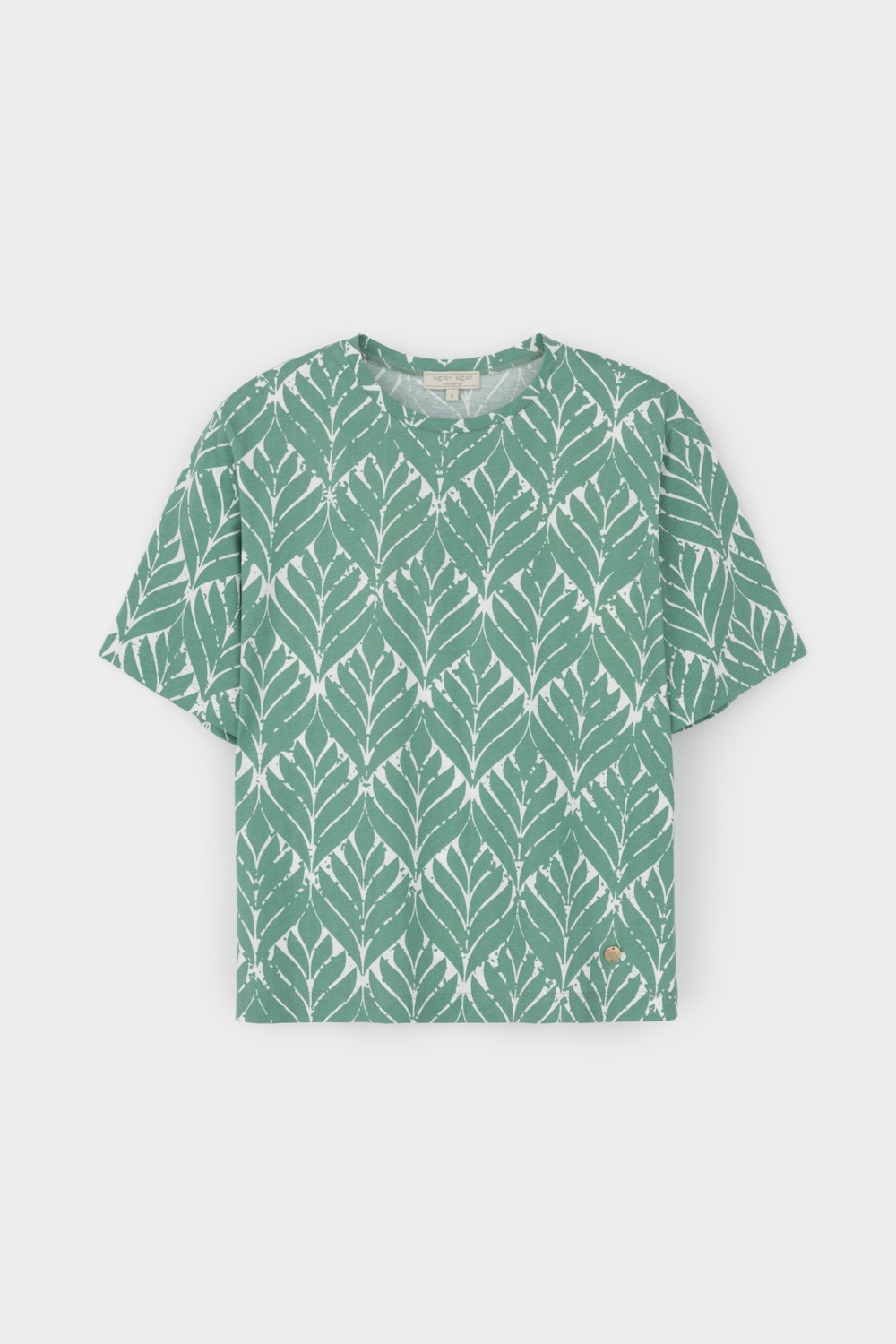 Футболка прямого силуэта из высококачественного гребенного хлопка. Дизайн орнамента на футболке создает летнее настроение.