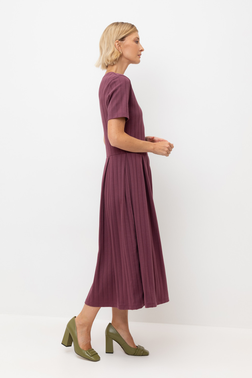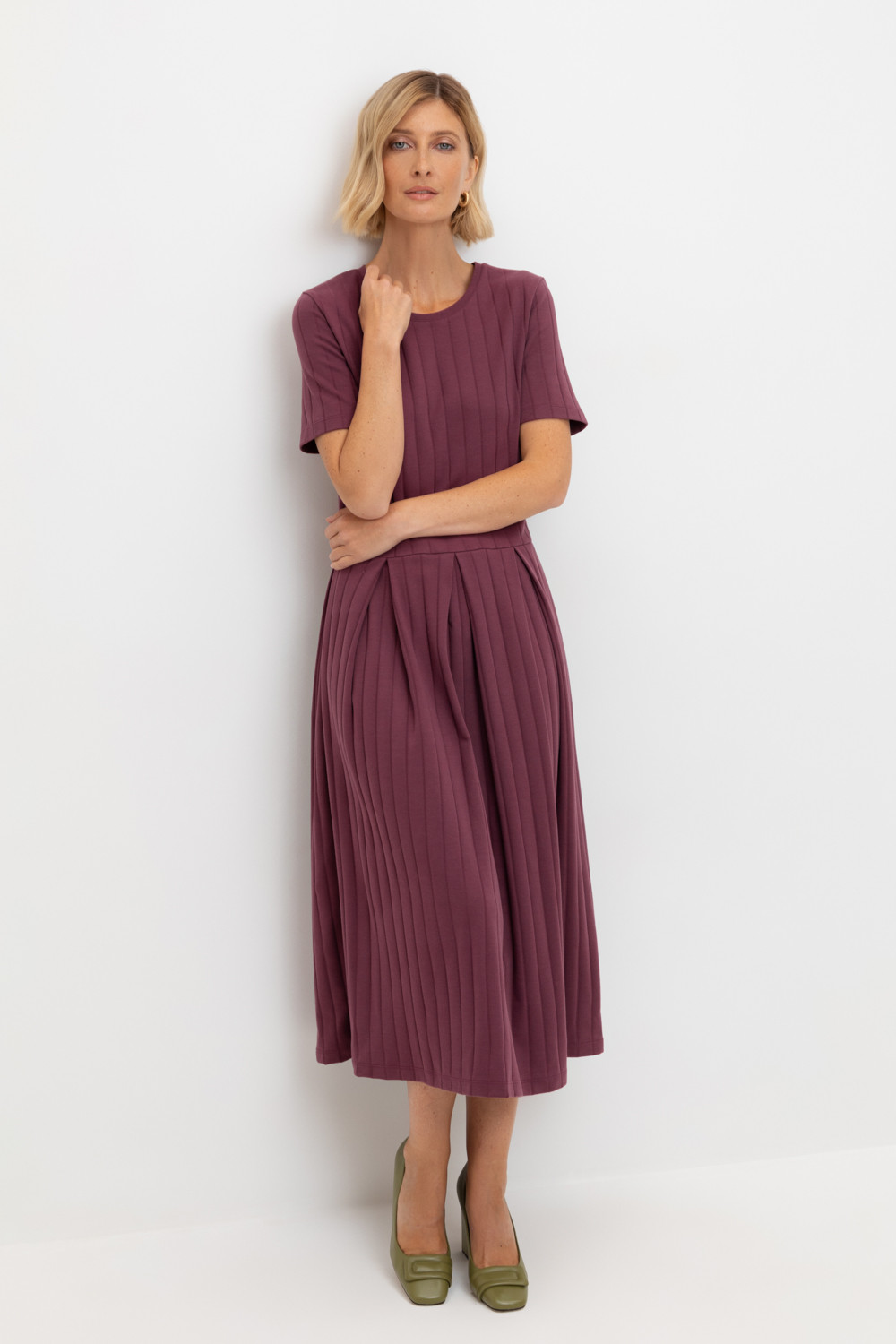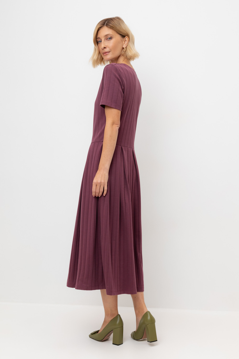 Платье с круглым вырезом и короткими рукавами из плотного гладкого трикотажа интерлок в рубчик.                                                                                                                                Все трикотажные полотна производятся в соответствии с нормами Швейцарского сертификата ЭкоТекс. Сделано в России