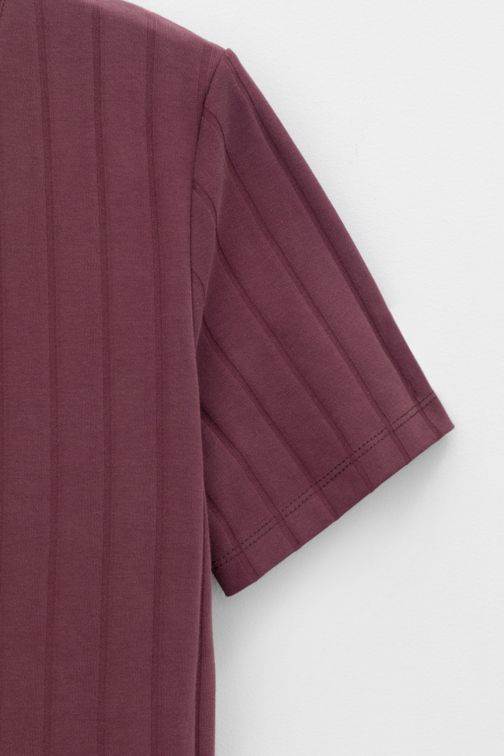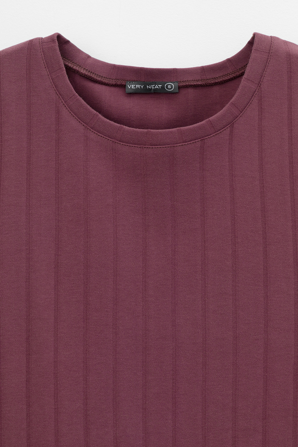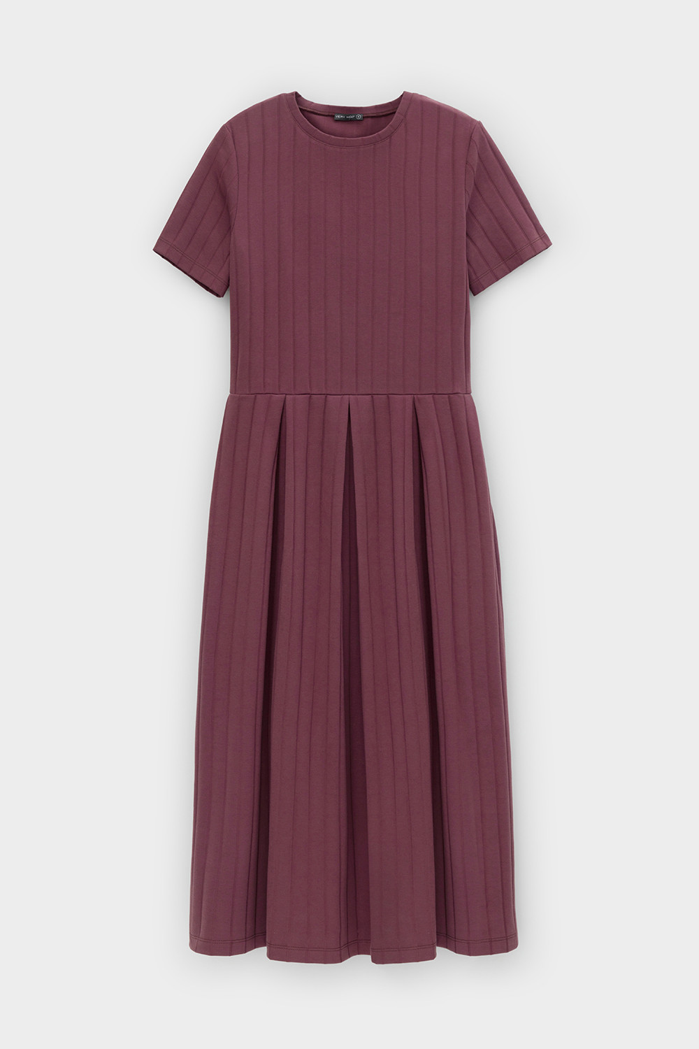 Платье с круглым вырезом и короткими рукавами из плотного гладкого трикотажа интерлок в рубчик.                                                                                                                                Все трикотажные полотна производятся в соответствии с нормами Швейцарского сертификата ЭкоТекс. Сделано в России