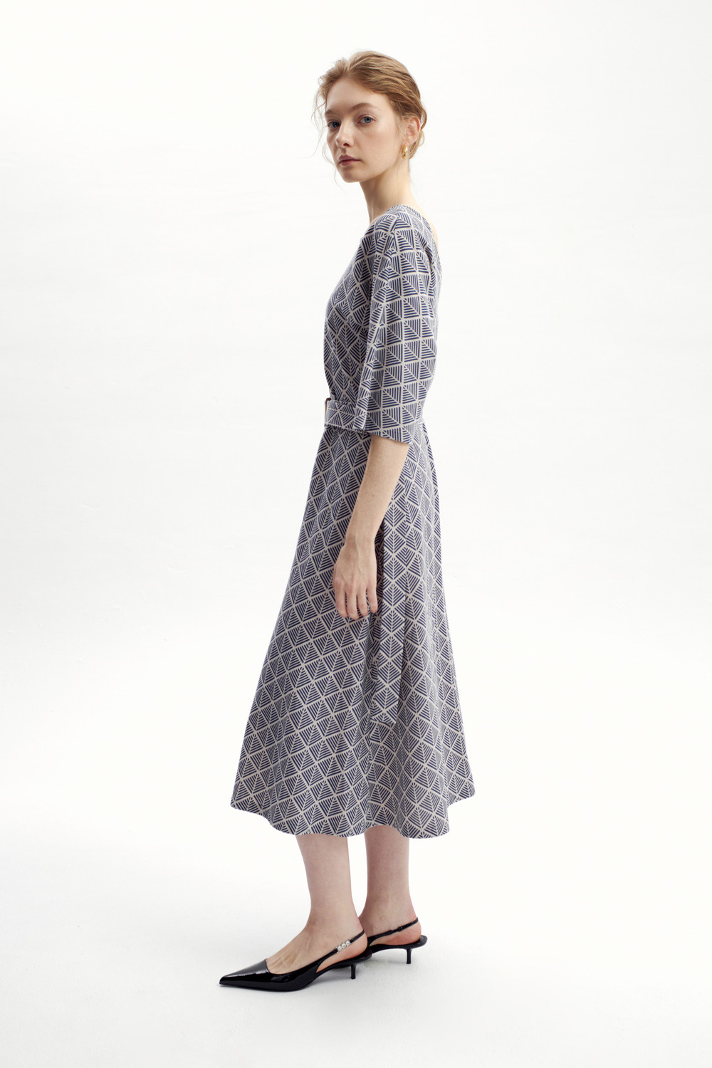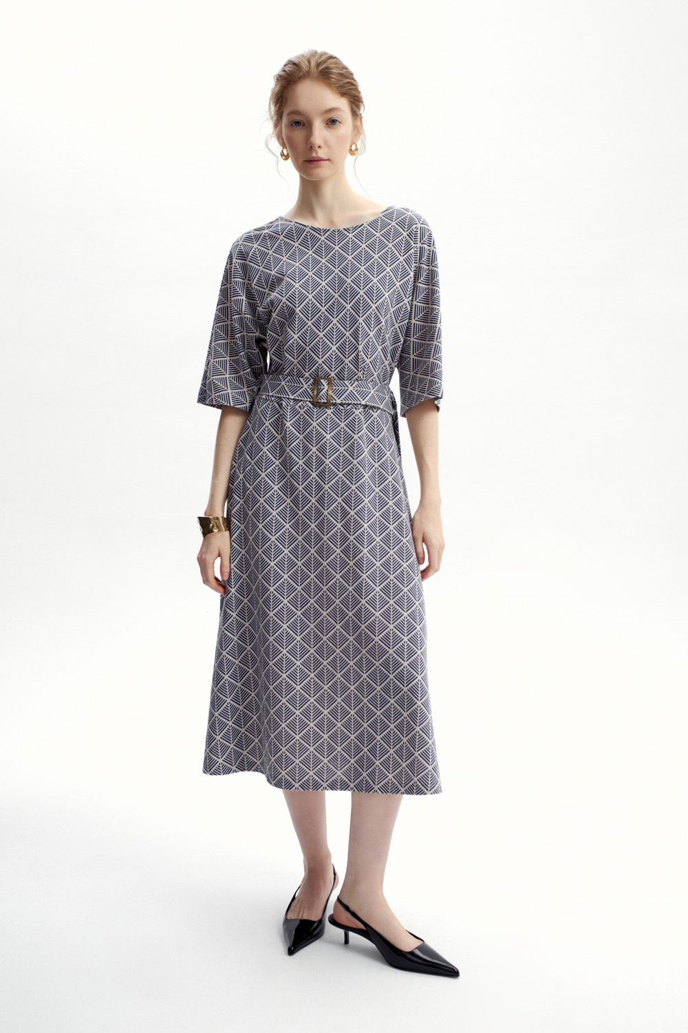 Текстурное платье из легкого хлопка. Основной акцент в дизайне платья — это цельнокроенный рукав, который обеспечивает идеальную посадку и свободу движений. Вырез на спине добавляет женственности, подчеркивая изящество фигуры. Съемный пояс из основного полотна позволяет регулировать силуэт, акцентируя внимание на талии.
