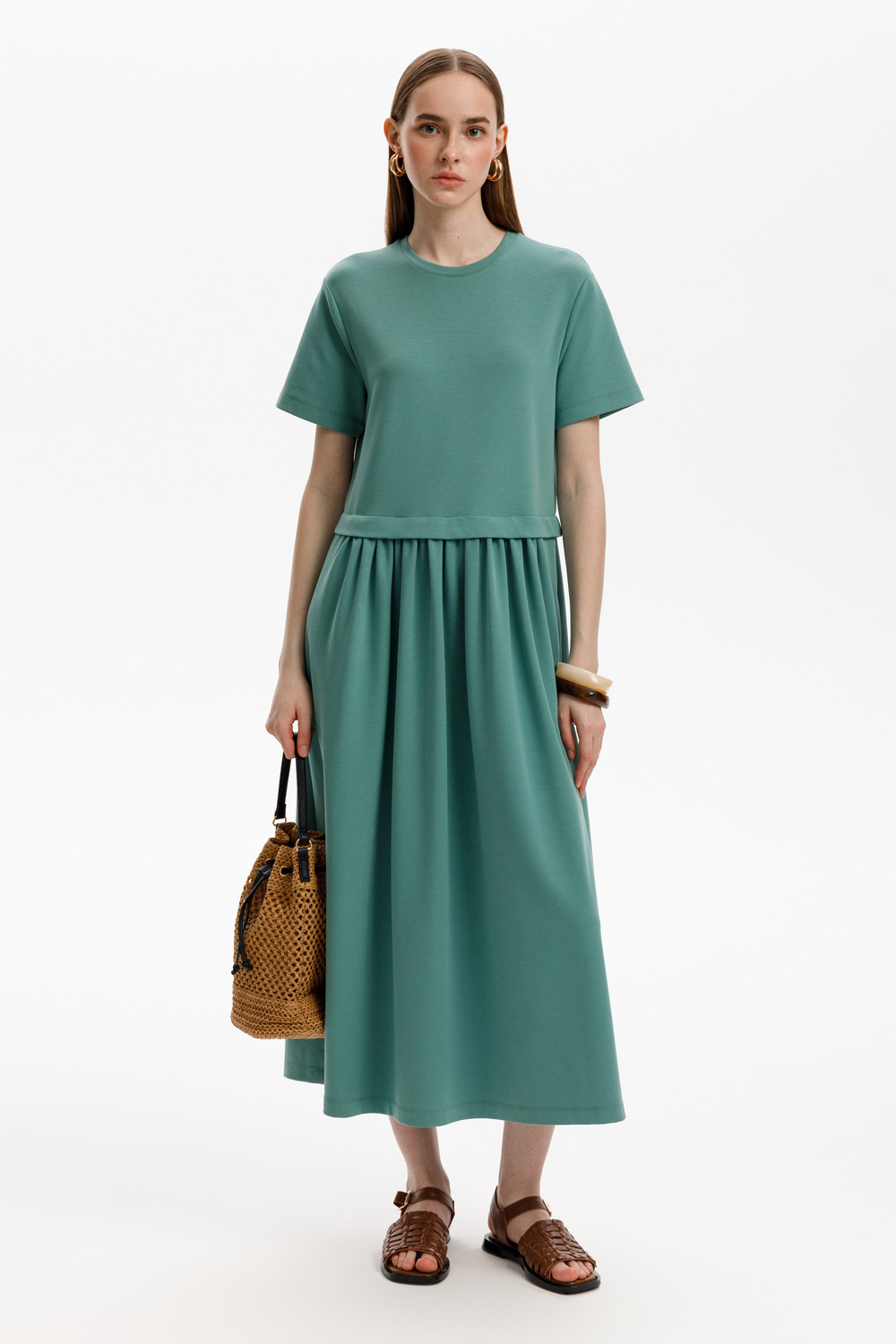 Летнее платье, изготовленное из премиального трикотажного полотна DOUBLE FACE. Мягкий на ощупь трикотаж выполнен из высококачественной гребенной пряжи. Свободный силуэт, наличие боковых карманов, придают изделию спортивный и одновременно романтический стиль