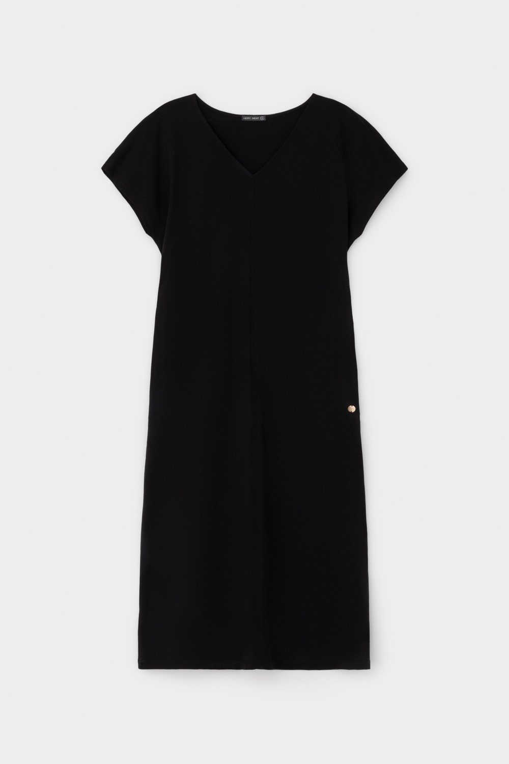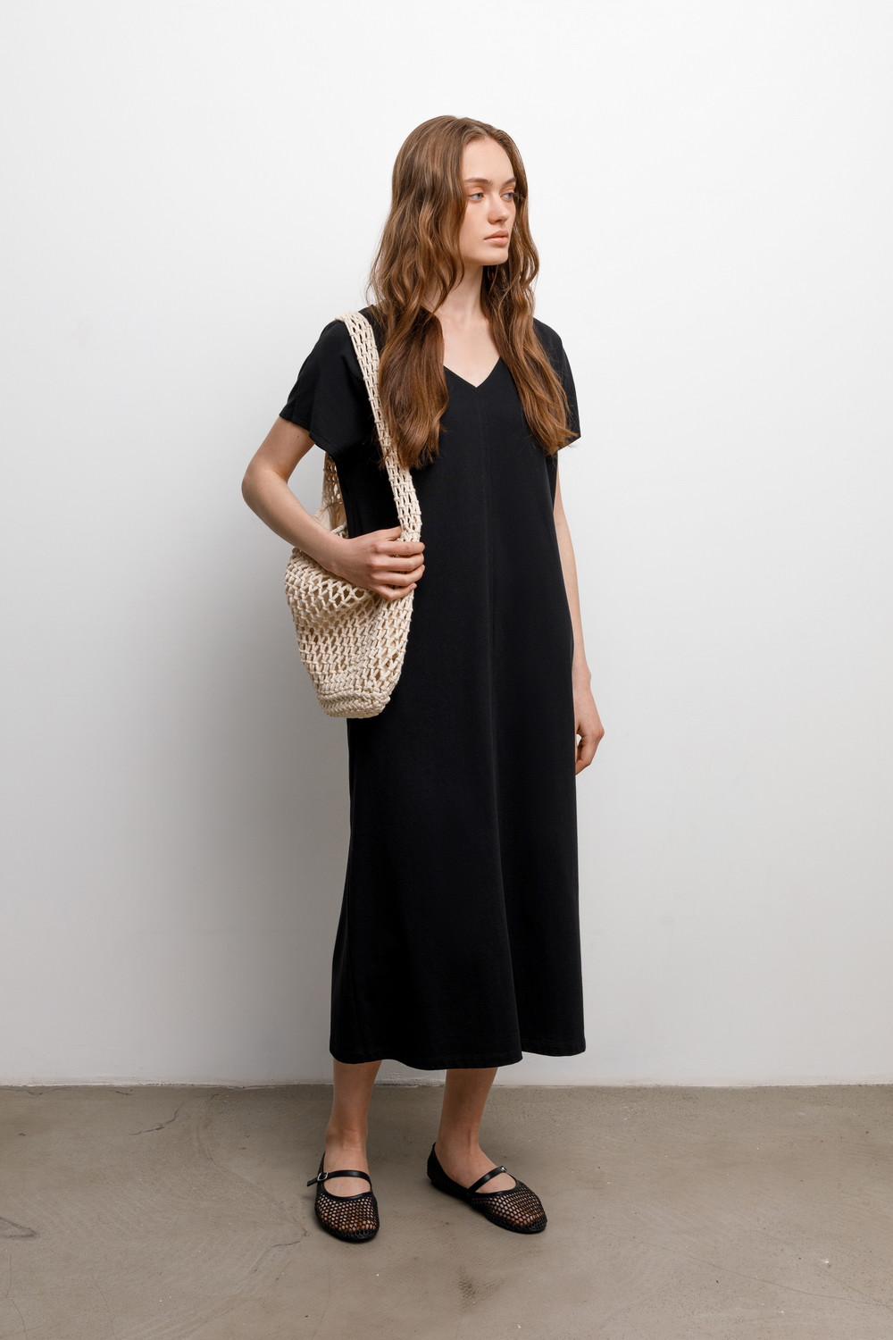 Лаконичное трикотажное платье из 100% мягкого хлопка. Наличие боковых карманов придают изделию функциональность.