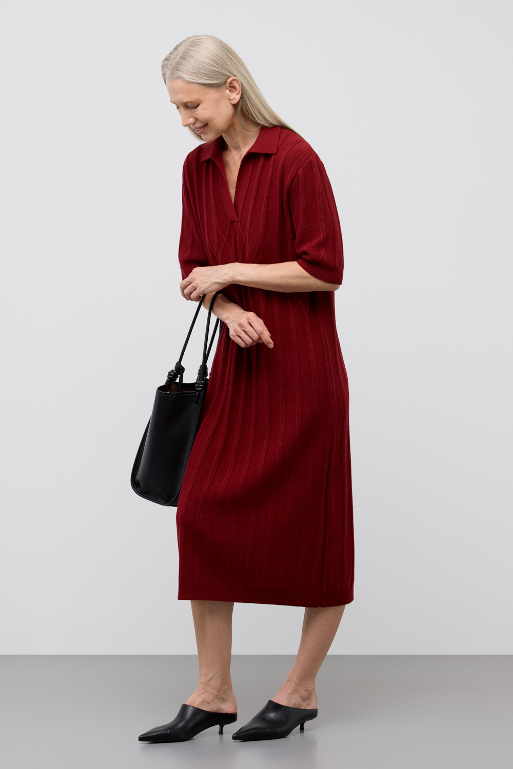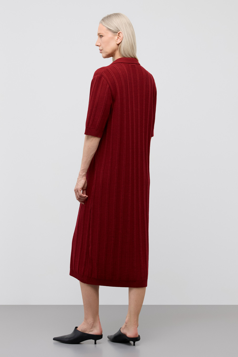 Платье-поло, изготовленное из австралийского мериноса. Натуральная шерсть обеспечивает комфорт, отличную терморегуляцию и высокую воздухопроницаемость. Элегантный воротник в стиле поло и короткие рукава формируют современный и универсальный силуэт, идеально подходящий как для офисных встреч, так и для прогулок по городу.