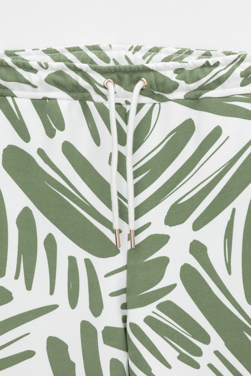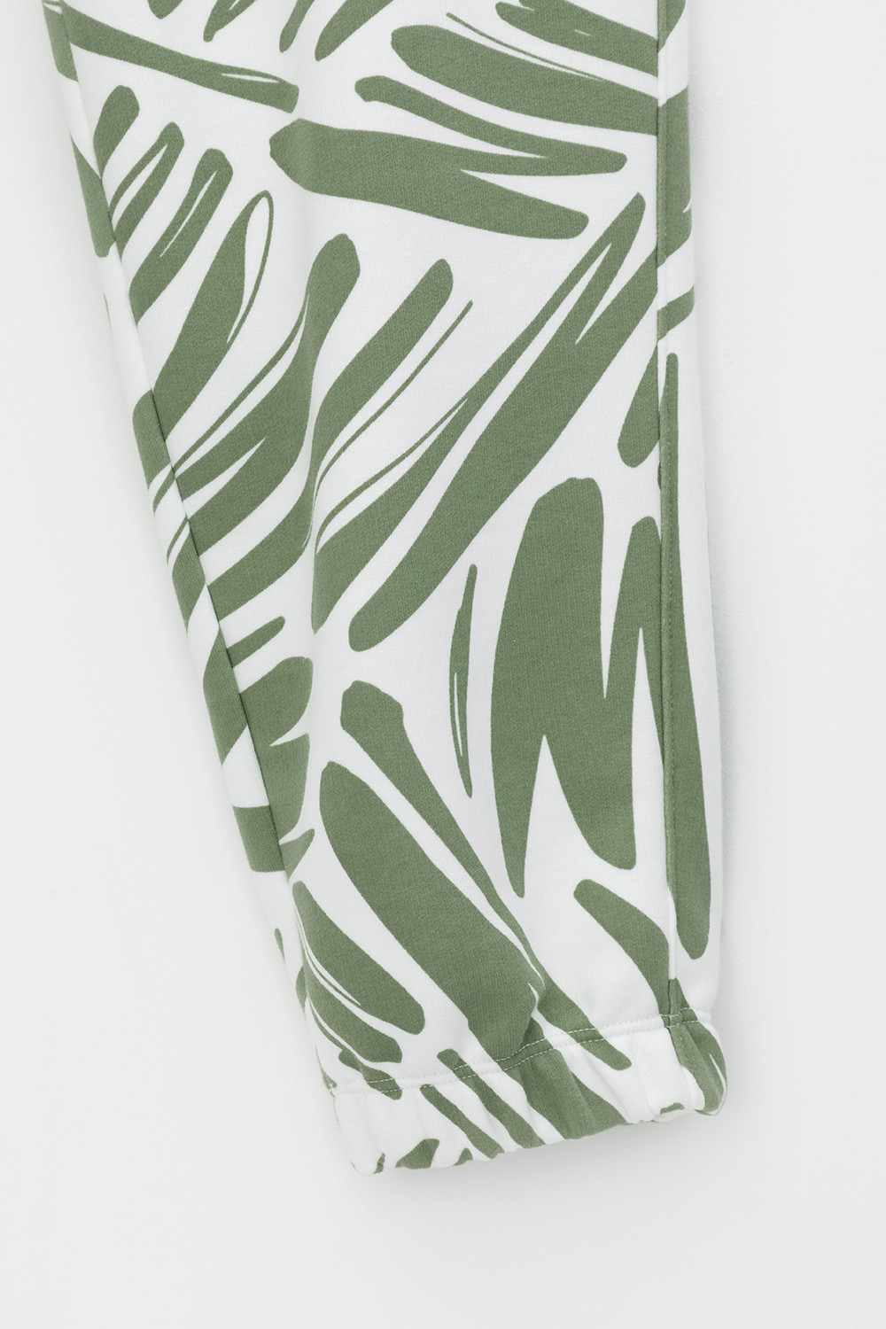 Теплые брюки с манжетами на резинке и боковыми карманами из мягкого набивного трикотажного футера трёхнитки. Пояс со шнурком позволяет регулировать посадку.
