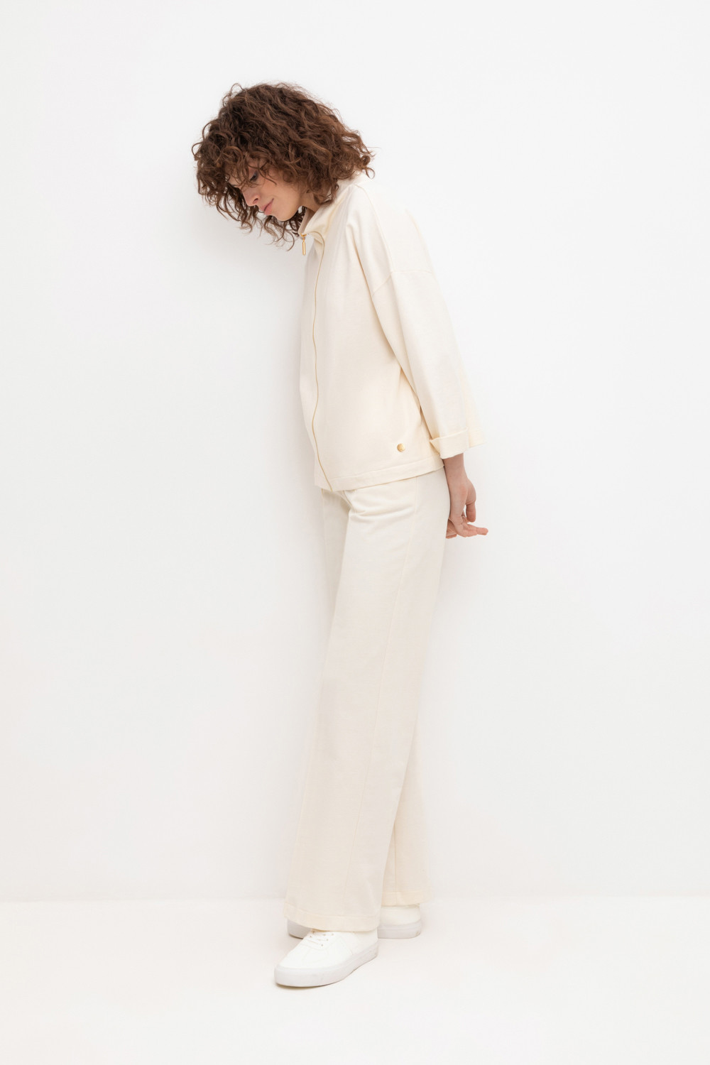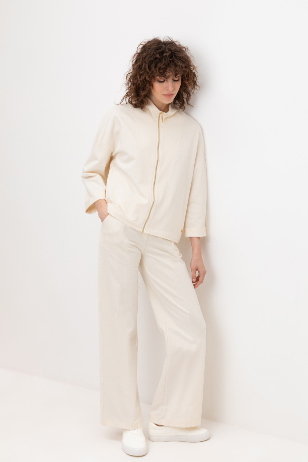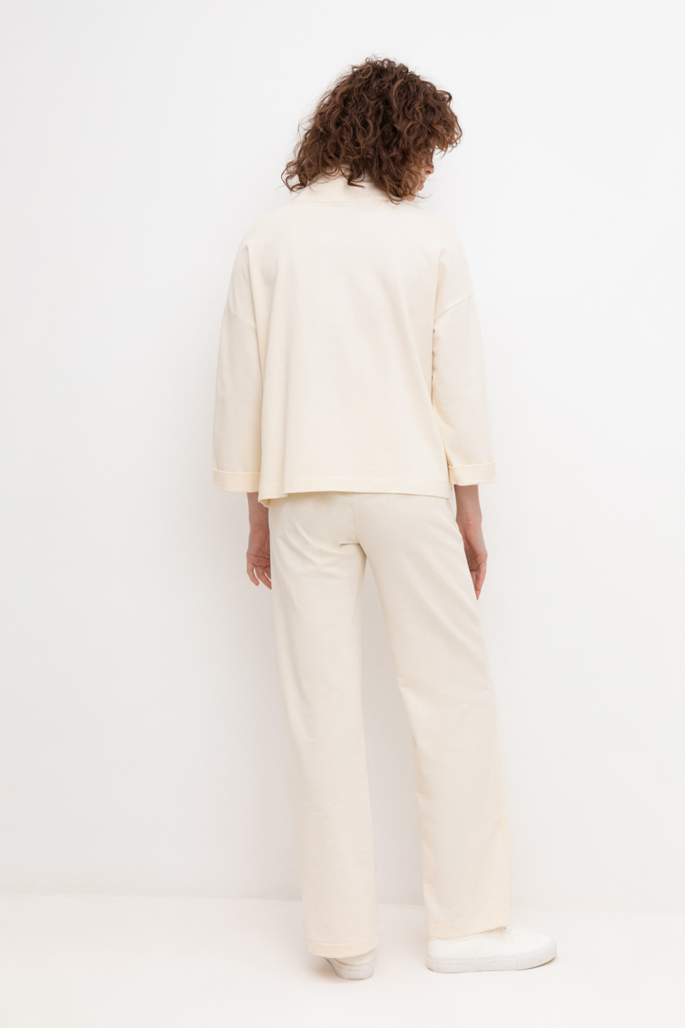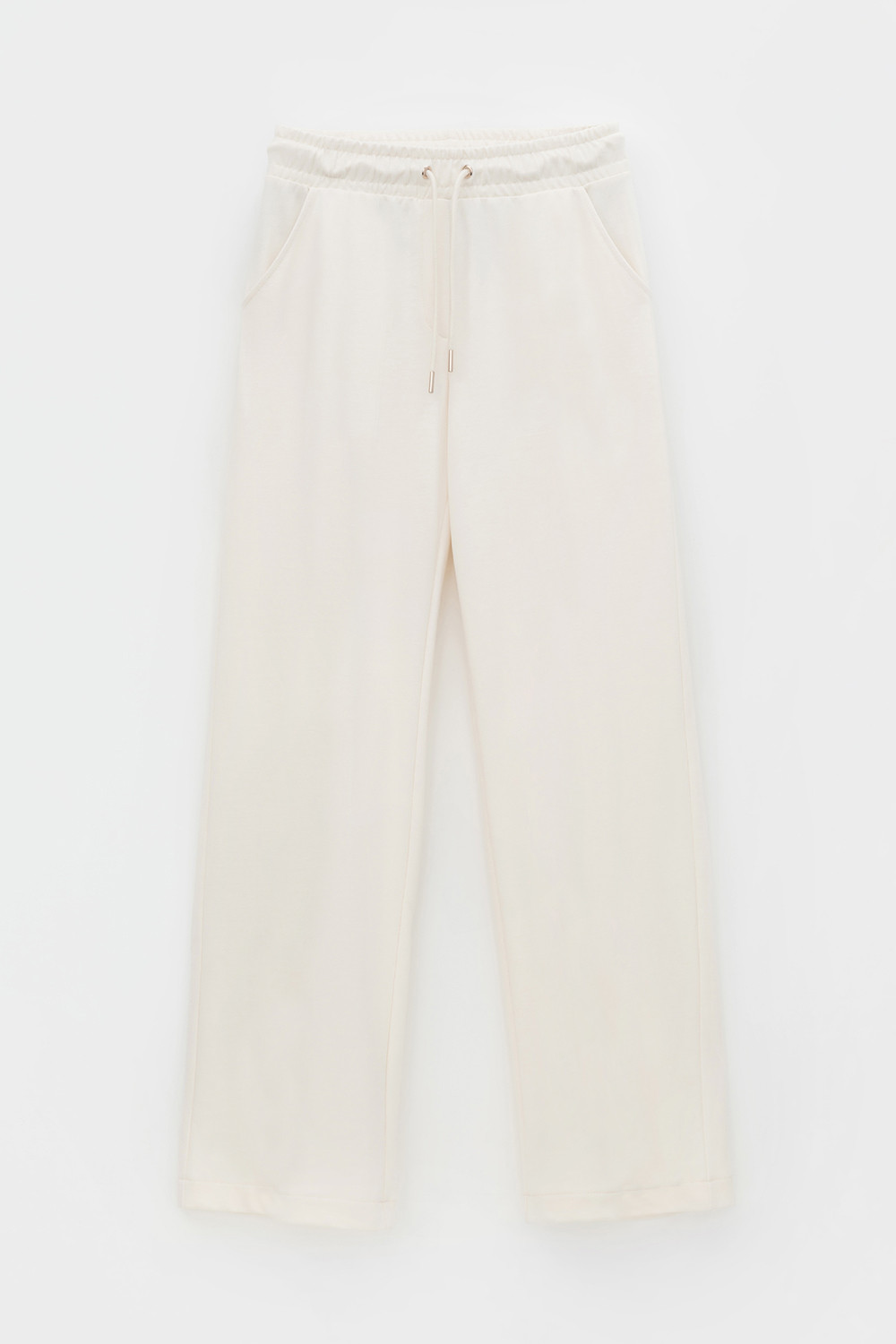 Брюки прямого кроя и боковыми карманами из мягкого петельчатого футера с добавлением эластана. Пояс со шнурком позволяет регулировать посадку. Идеальный и комфортный вариант на каждый день.