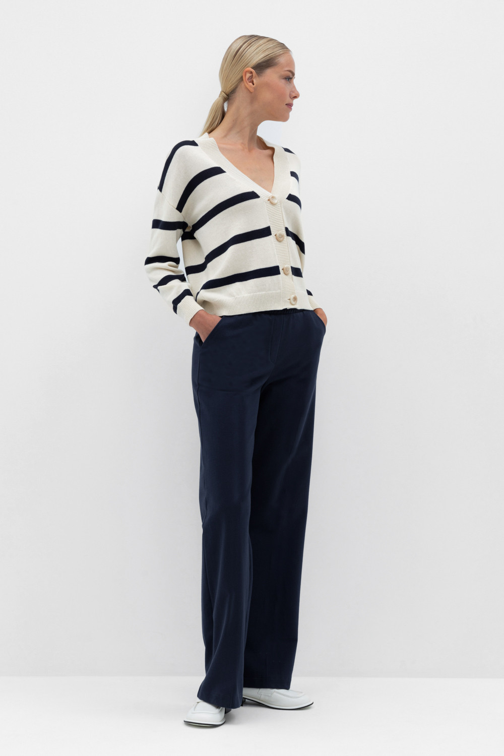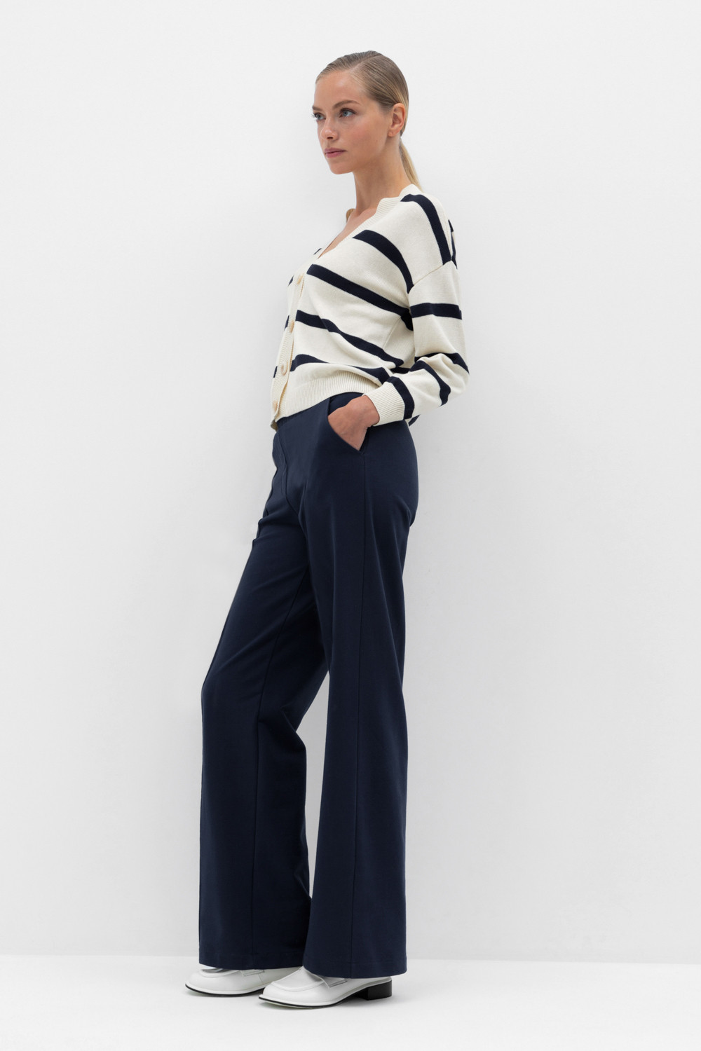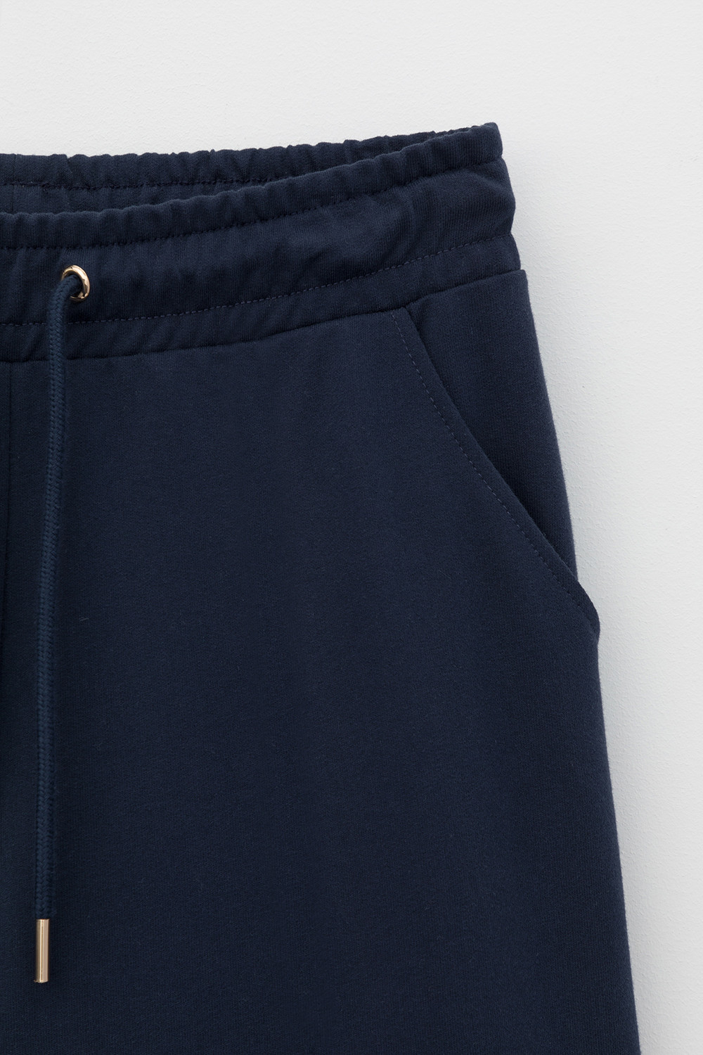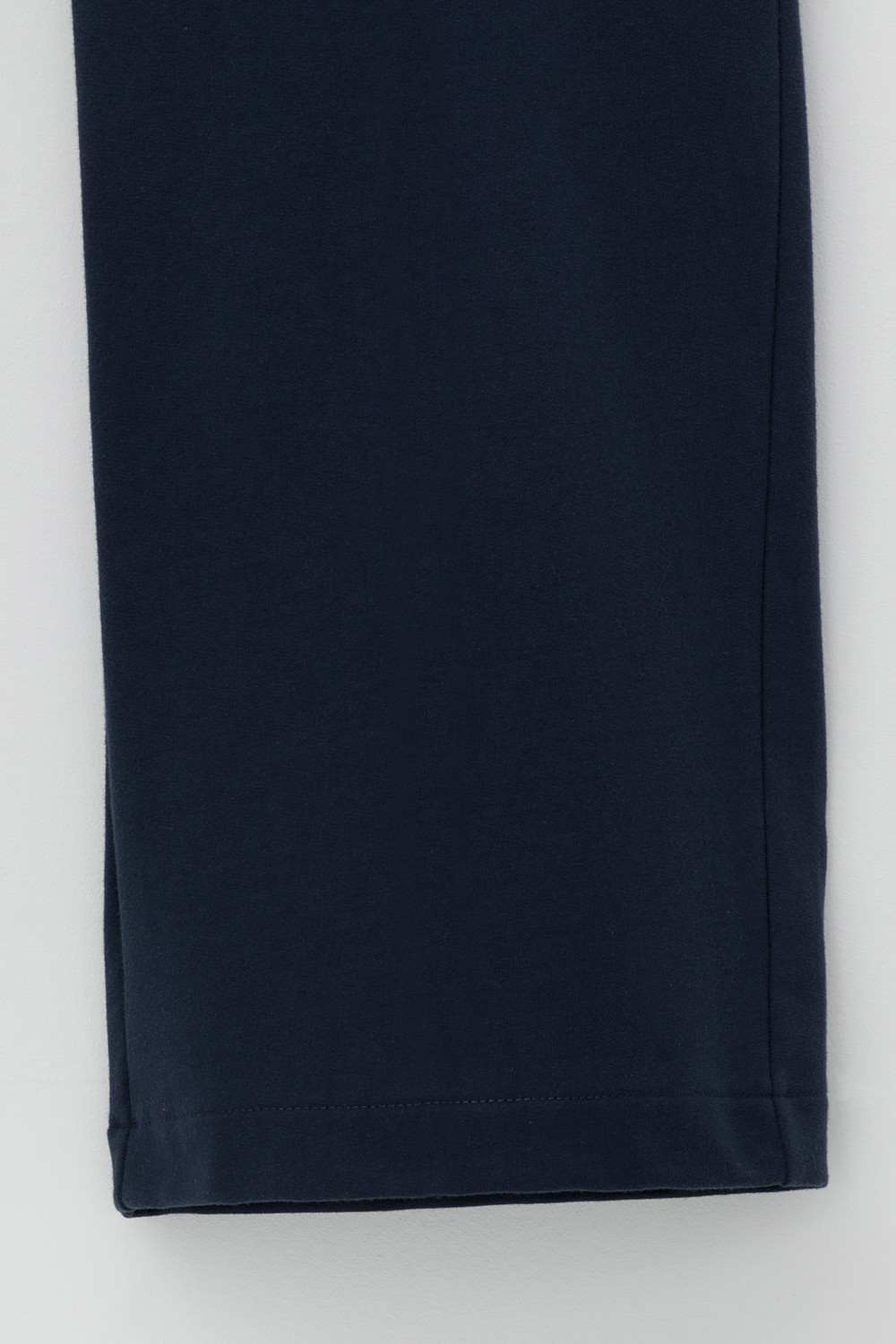 Брюки прямого кроя и боковыми карманами из мягкого петельчатого футера с добавлением эластана. Пояс со шнурком позволяет регулировать посадку. Идеальный и комфортный вариант на каждый день.