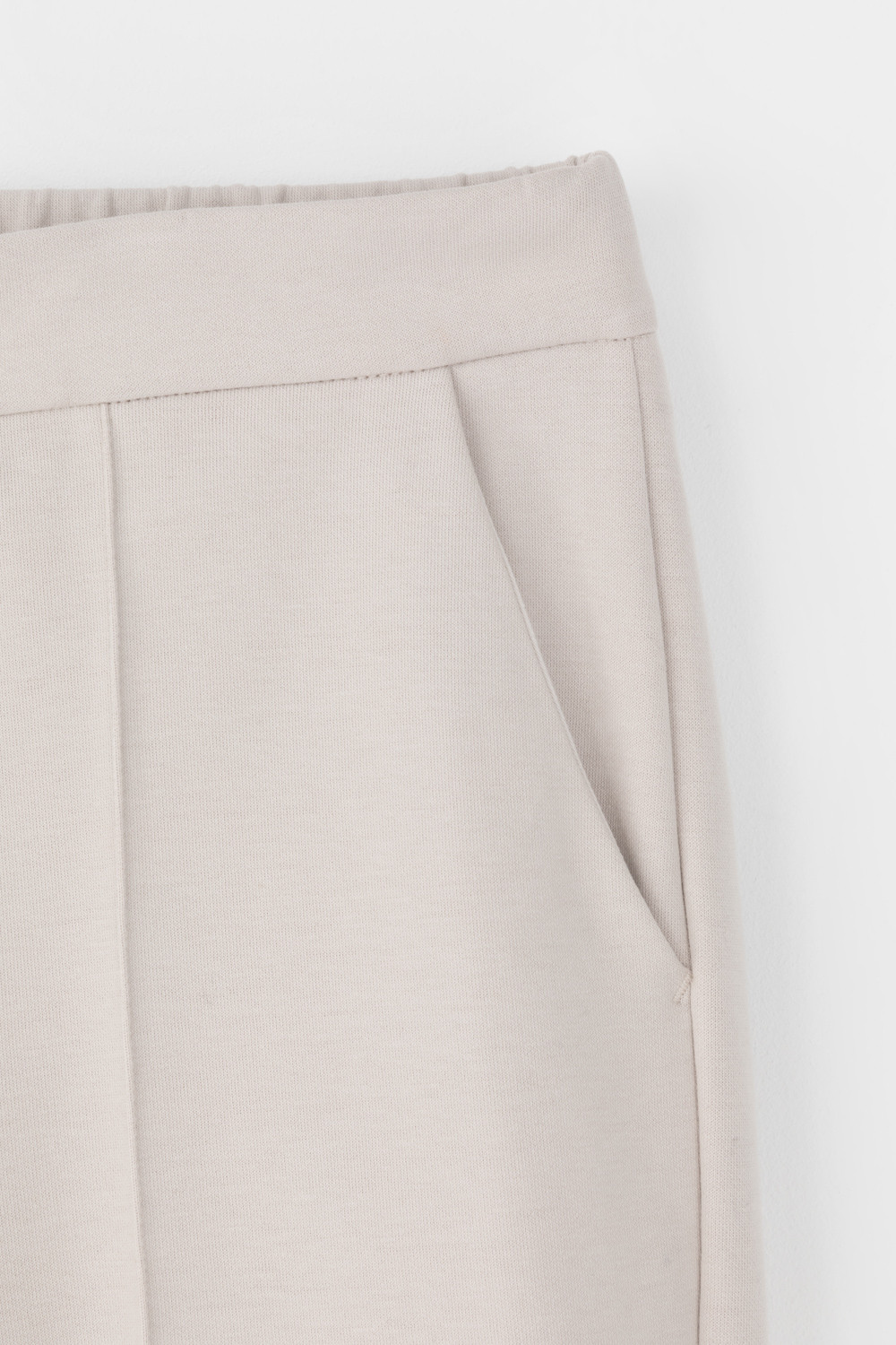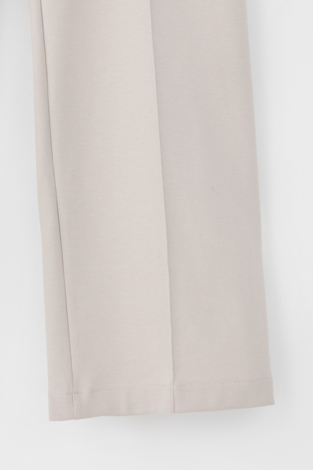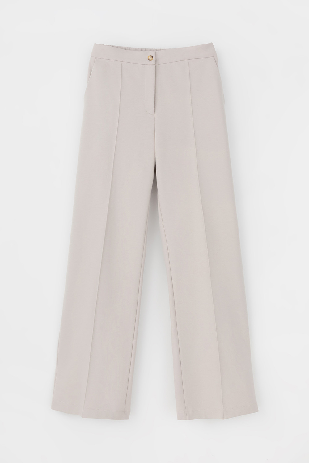 Свободные женские брюки со стрелками и боковыми карманами из плотного гладкого трикотажа интерлок. Застегиваются на молнию и кнопку. Низ обработан плоскими швами.