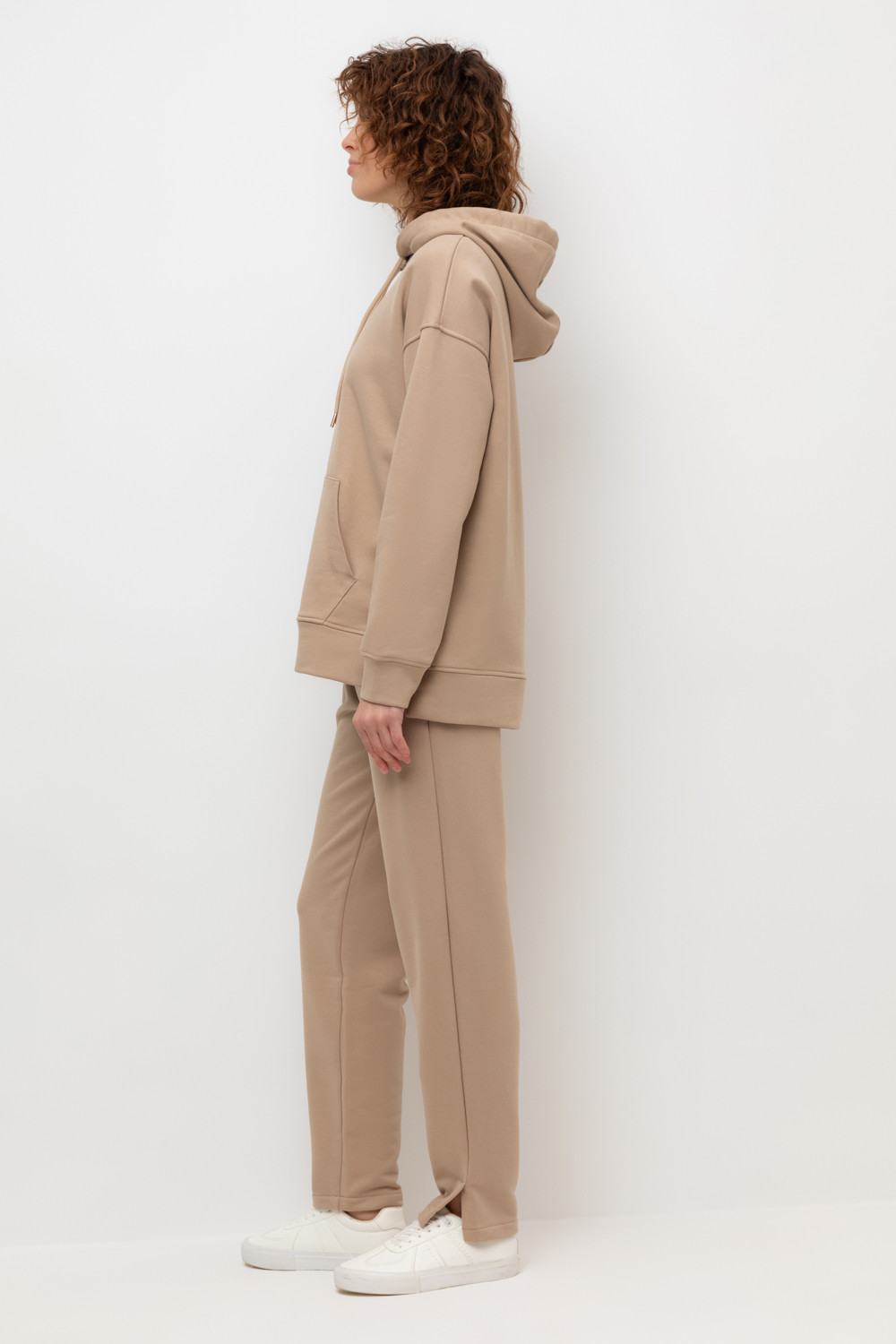 Брюки прямого кроя с боковыми карманами из петельчатого футера трехнитки. Гладкий и плотный материал на основе хлопка сохраняет форму.