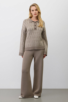 Мягкие брюки из премиальной пряжи, созданные с использованием инновационной технологии смешанного волокна. Уникальная технология производства позволила сформировать воздушную жаккардовую структуру, которая выглядит невероятно изысканно. Деликатное переплетение натуральной шерсти с современным акриловым волокном дарит непревзойденные тактильные ощущения.