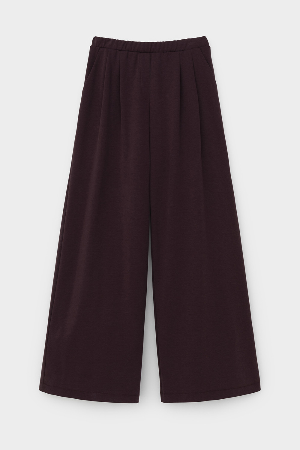Брюки прямого кроя с защипами изготовлены из высококачественного трикотажного полотна DOUBLE FACE с добавлением спандекса. Ткань прошла каучуковую обработку, что придает ей легкость и шелковистую текстуру. Прямой крой акцентирует силуэт, формируя элегантный классический образ. Боковые карманы добавляют изделию практичности.