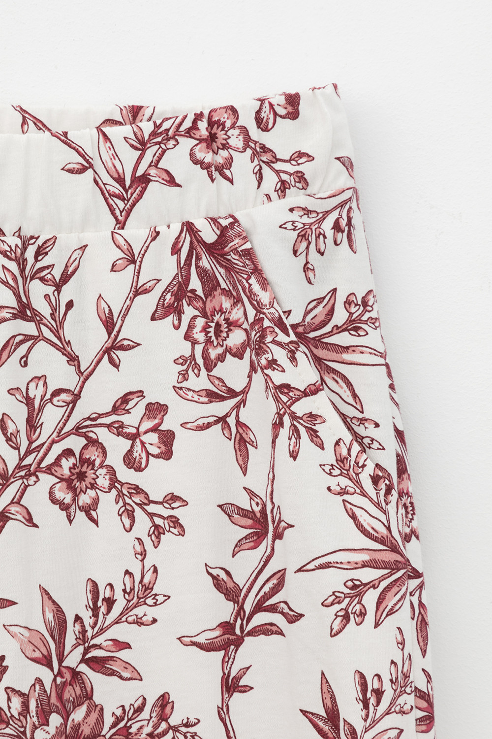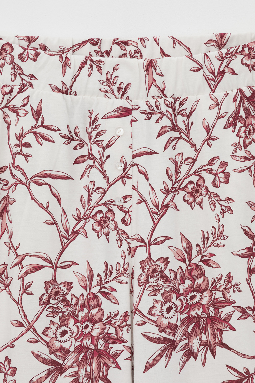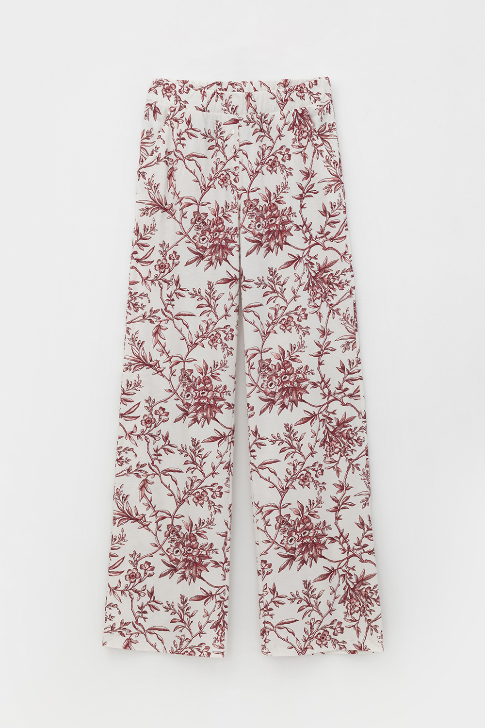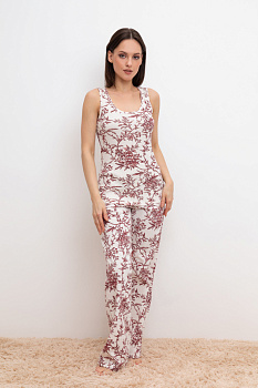 Лёгкие комфортные брюки из набивного трикотажа из 100% натурального хлопка. Модель с поясом на резинке, декоративным гульфиком с пуговицами и боковыми карманами. Низ изделия обработан плоскими швами. Гладкий материал приятен к телу, не теряет форму и позволяет коже дышать.