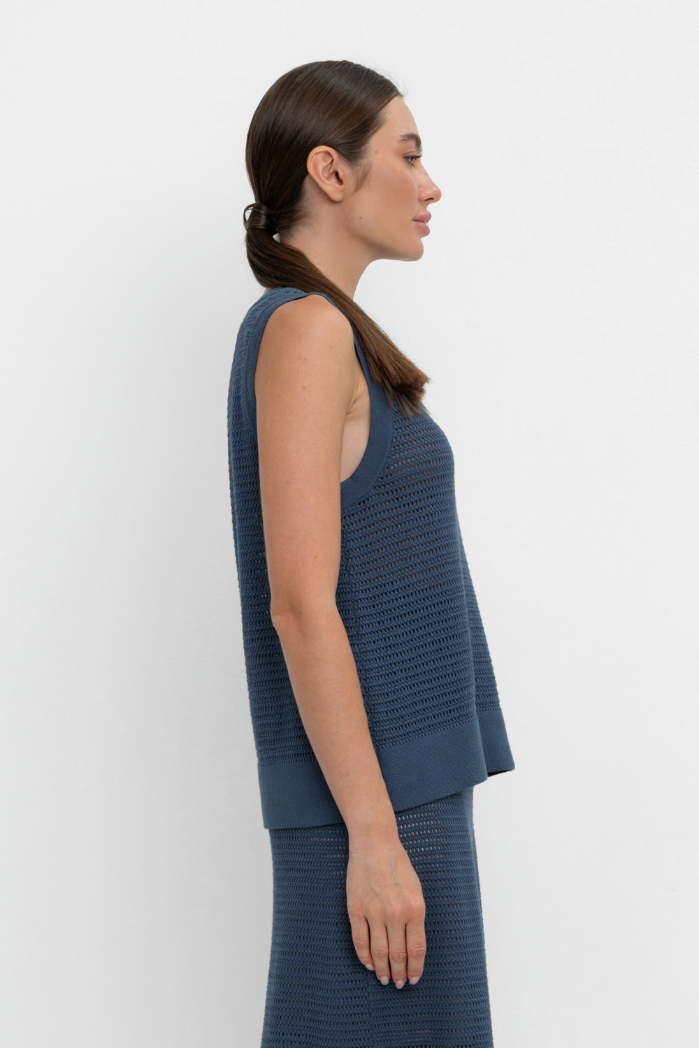 Вязаная ажурная майка. Состав 50% хлопок, 50% акрил. Благодаря акрилу в составе изделие не пилингуется.