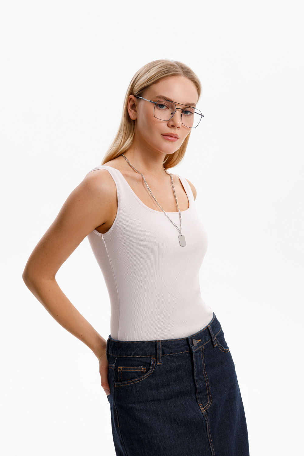 Классическим элементом гардероба является базовый топ в рубчик. Узкие бретели и глубокий вырез делают изделие комфортным в носке и универсальным в повседневной жизни.