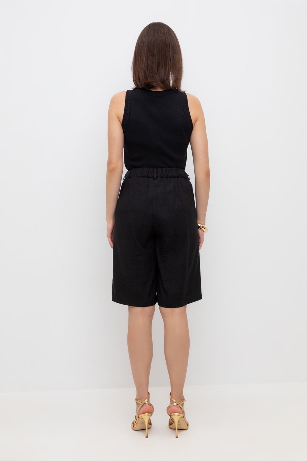 Удлиненные женские шорты из смесового льна с удобными боковыми карманами и резинкой по поясу