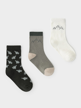 Носки с формованной пяткой и эластичной резинкой по краю. Украшены рисунком. В комплекте 3 пары. Изделия сохраняют форму и стойкий цвет после многочисленных стирок.