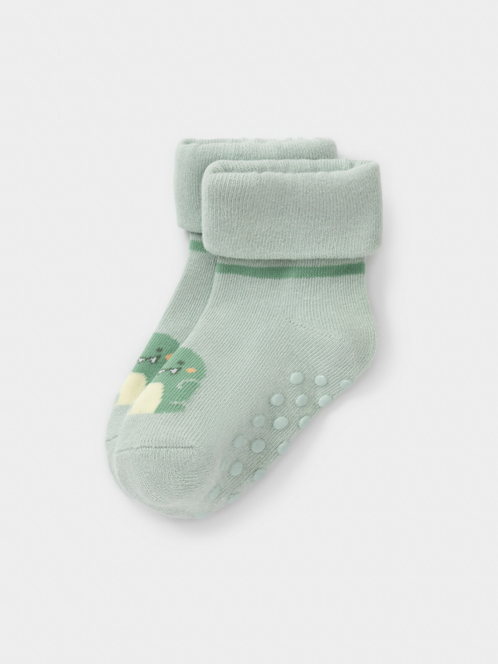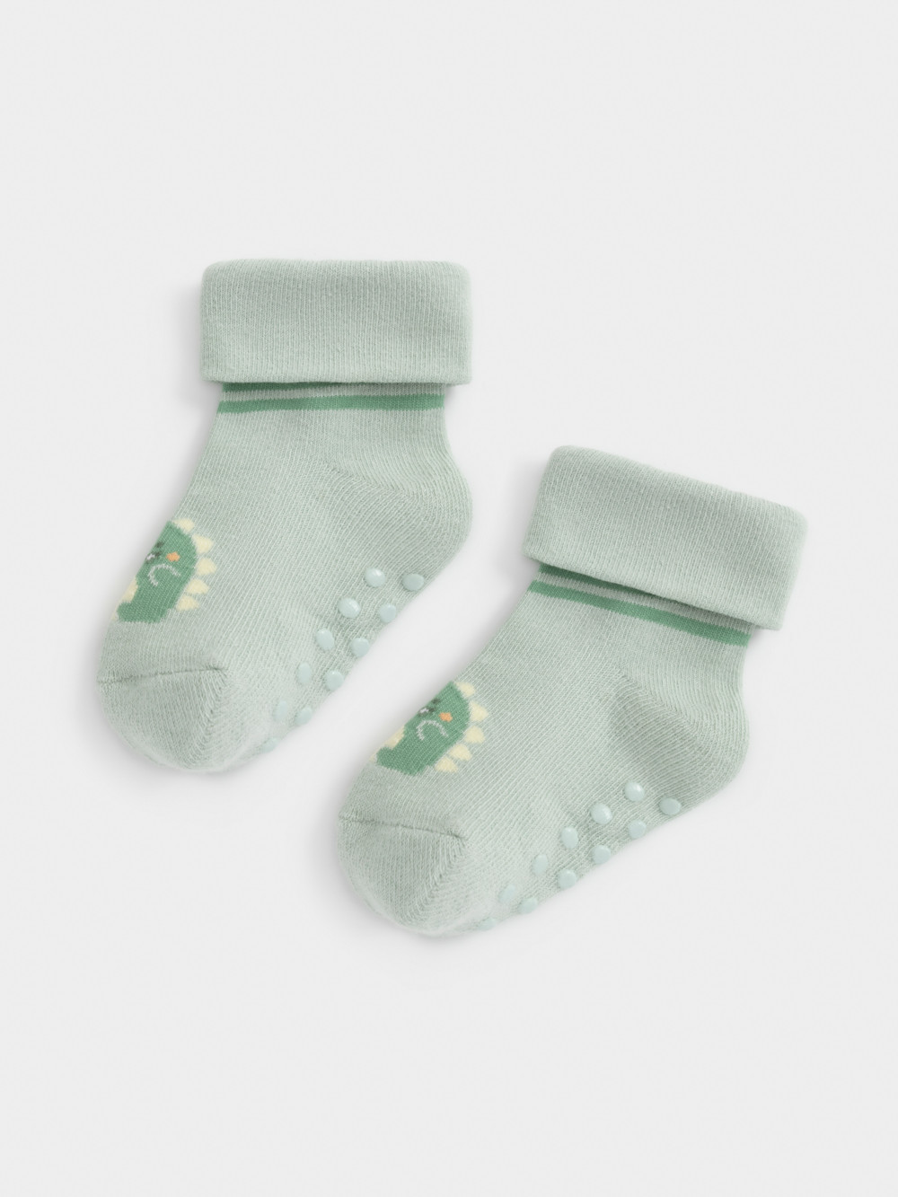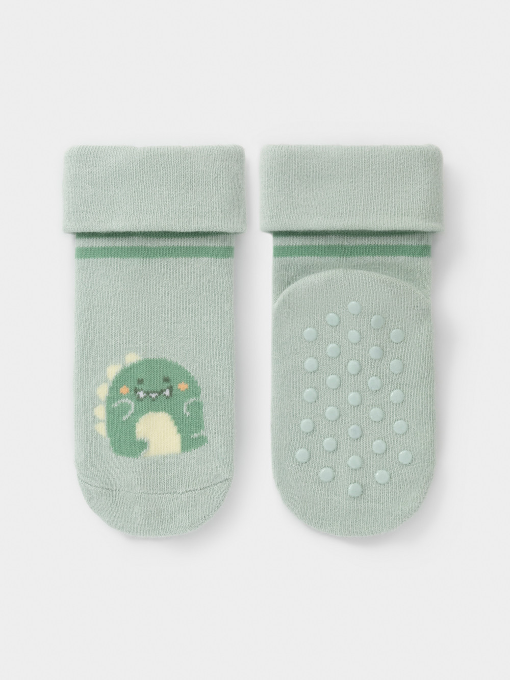 Носки детские с формованной пяткой и отворотом. Украшены рисунком. На стопе противоскользящие стопперы. Изделие сохраняет форму и стойкий цвет после многочисленных стирок.