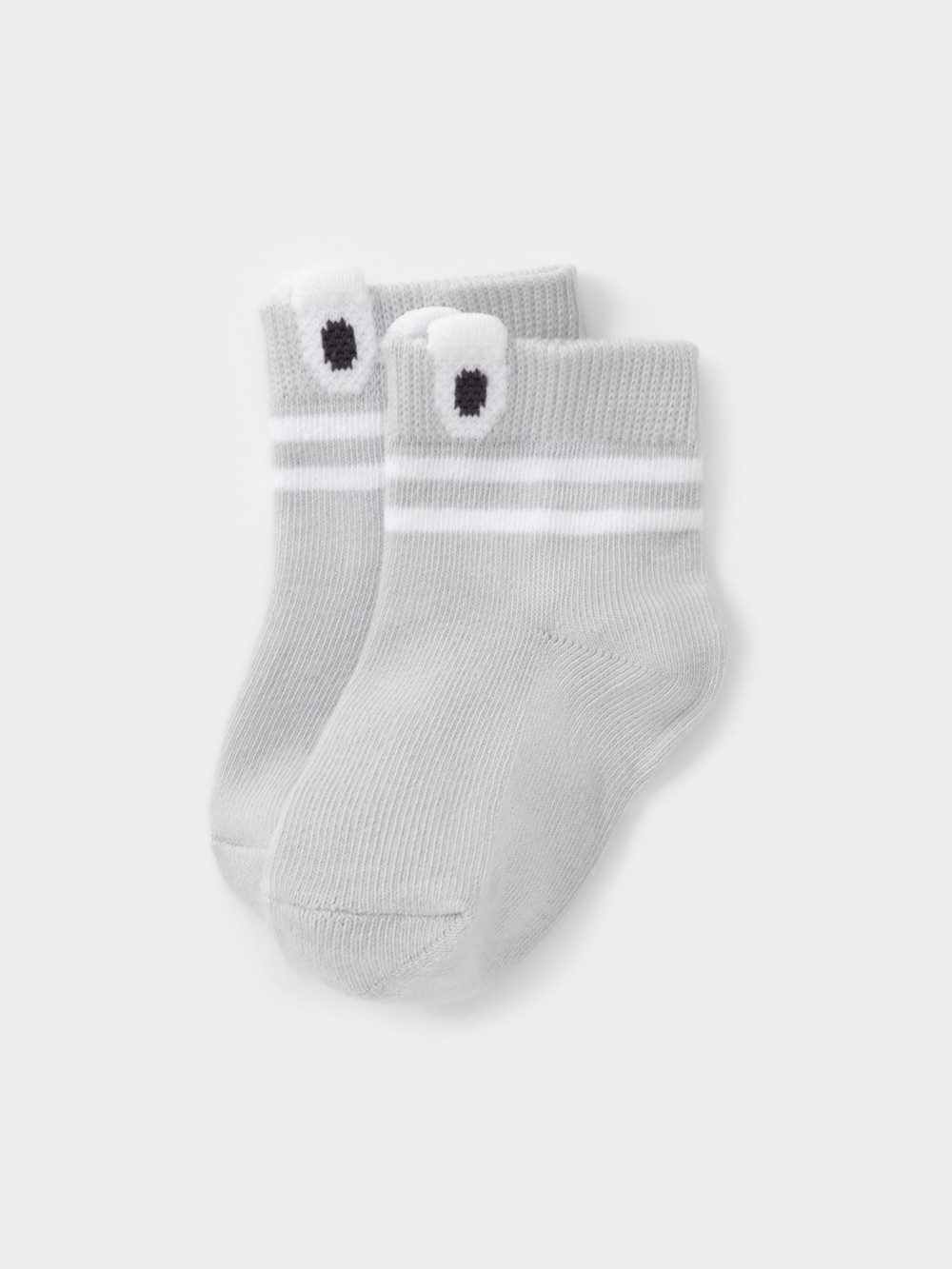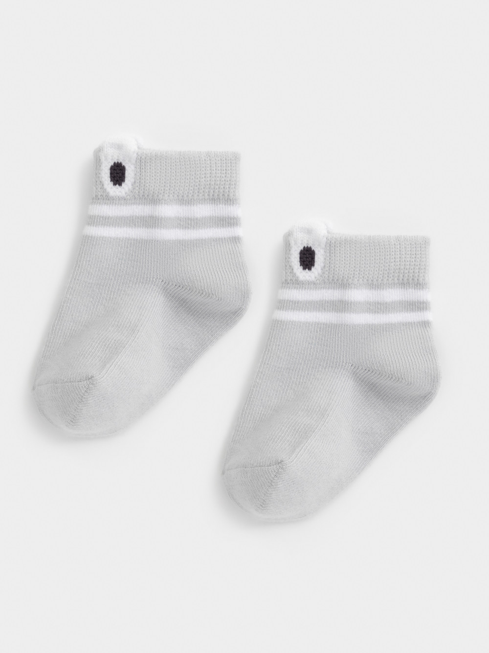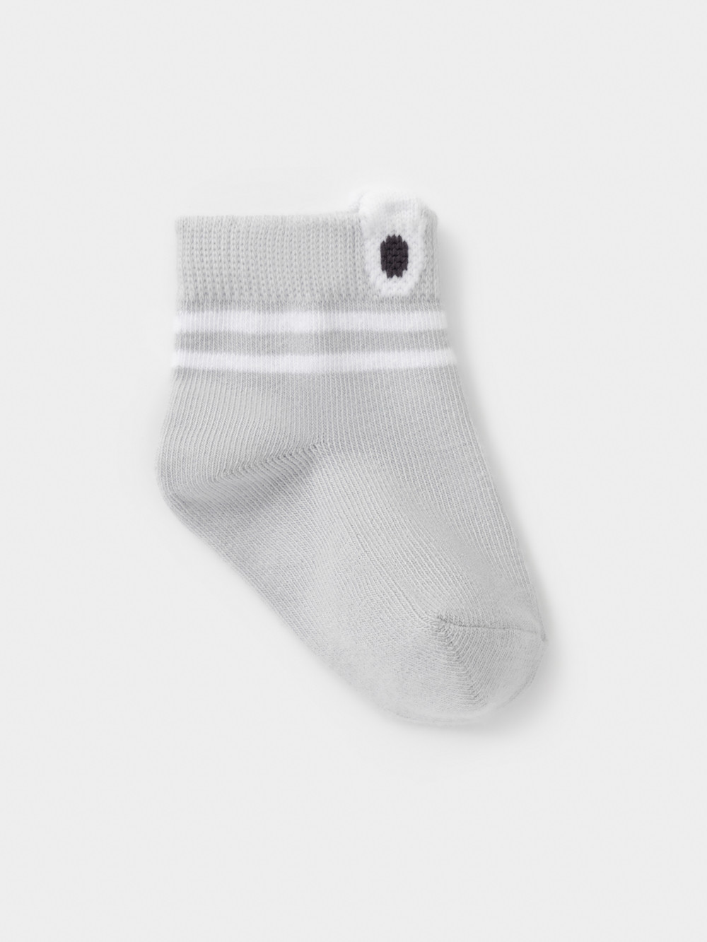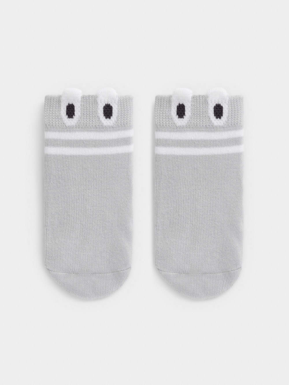 Носки короткие детские с формованной пяткой и эластичной резинкой по краю. Украшены рисунком и объёмными элементами. Изделие сохраняет форму и стойкий цвет после многочисленных стирок.