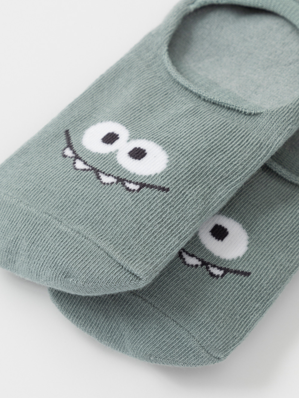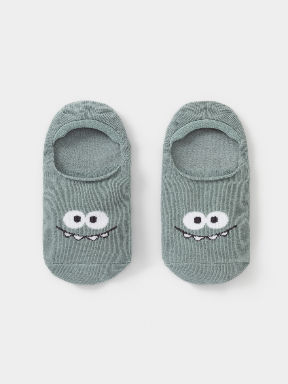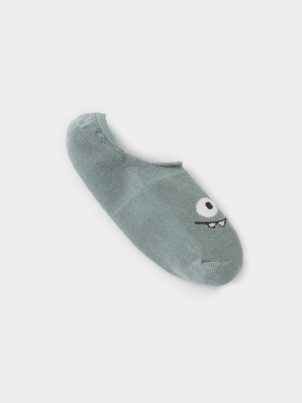 Короткие носки-следки для мальчика. Эластичная резинка по краю. Украшены рисунком с забавной мордочкой.