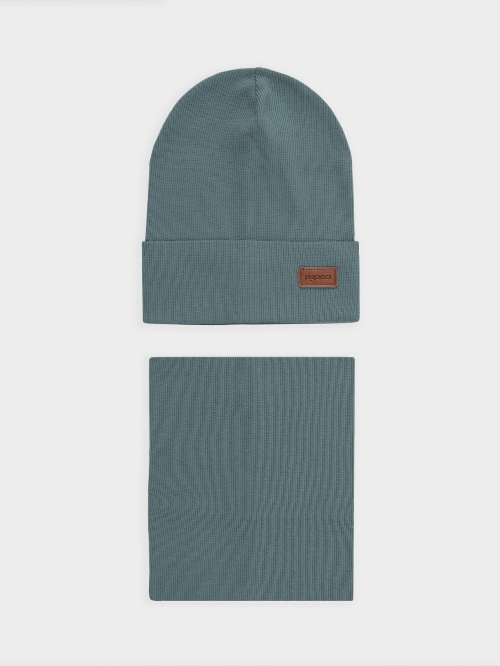 Комплект для мальчика: шапка и снуд. Изготовлен из хлопкового трикотажа в рубчик с добавлением спандекса. Комфортно прилегает, обеспечивая защиту от холода и хороший теплообмен.  Изделия хорошо тянутся, после многократных стирок сохраняют цвет и форму.