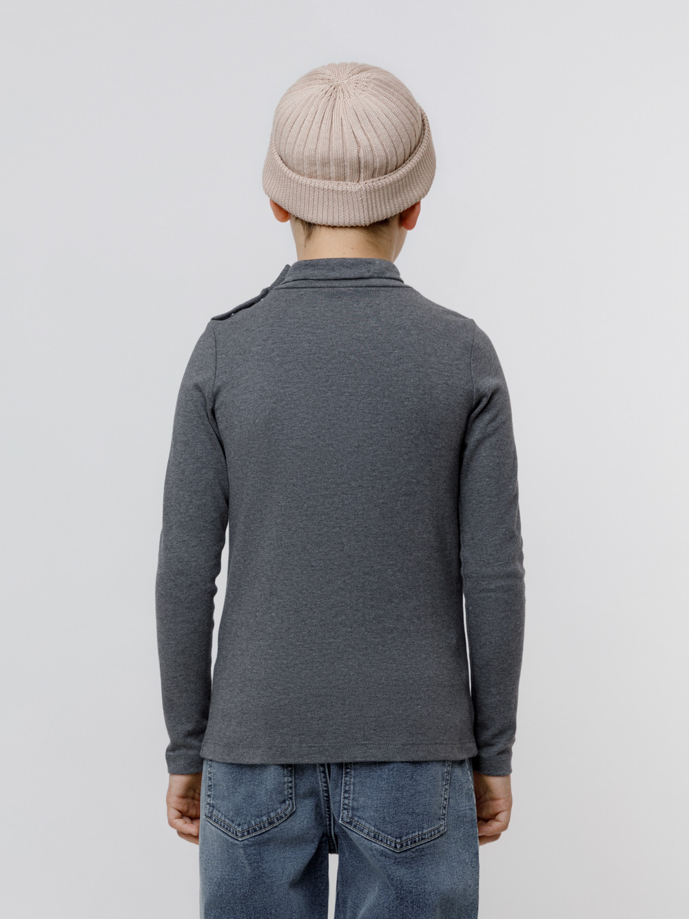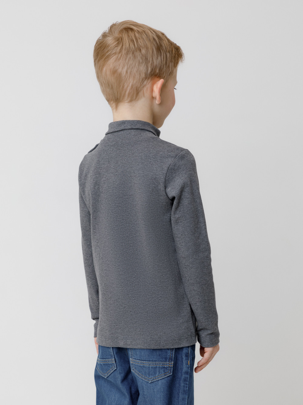 Однотонная водолазка с длинными рукавами. Выполнена из мягкого трикотажа интерлок. Высокое горло застёгивается на кнопки и защищает шею от переохлаждения.