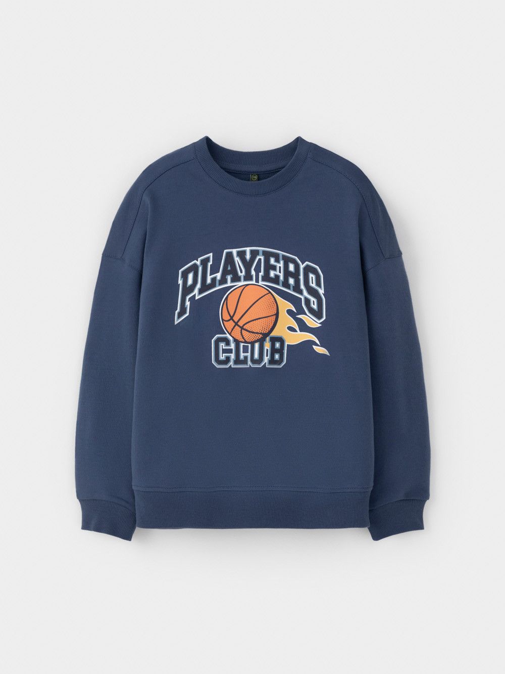 Джемпер для мальчика из высококачественного петельчатого футера.  Обтачка горловины, манжеты и пояс выполнены из эластичного полотна. Оригинальный принт нанесён с помощью стойких текстильных гипоаллергенных красителей.