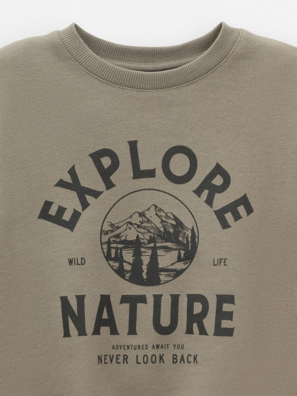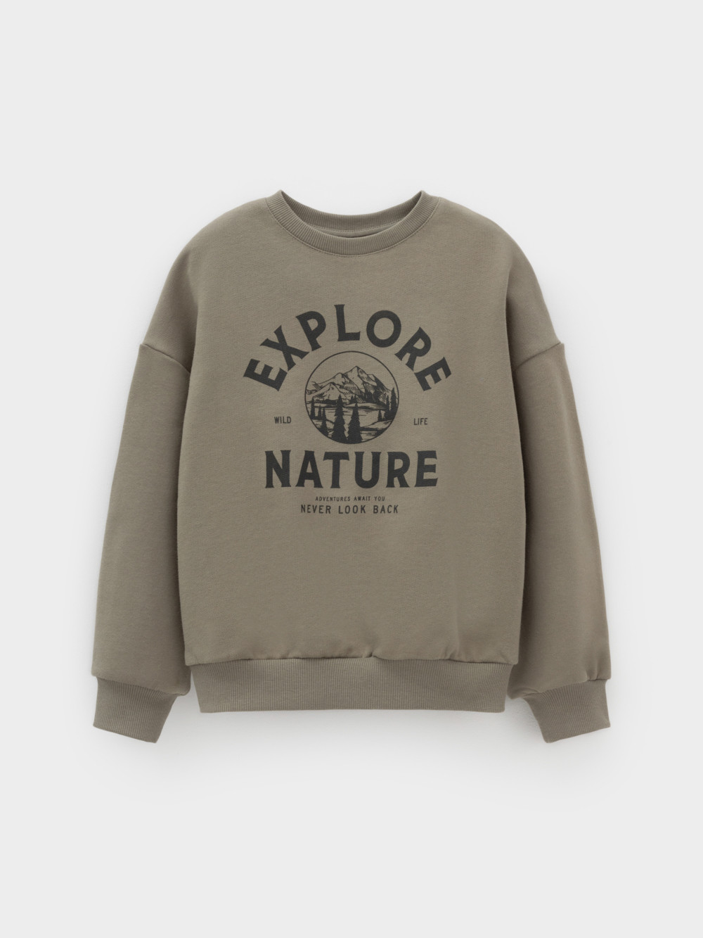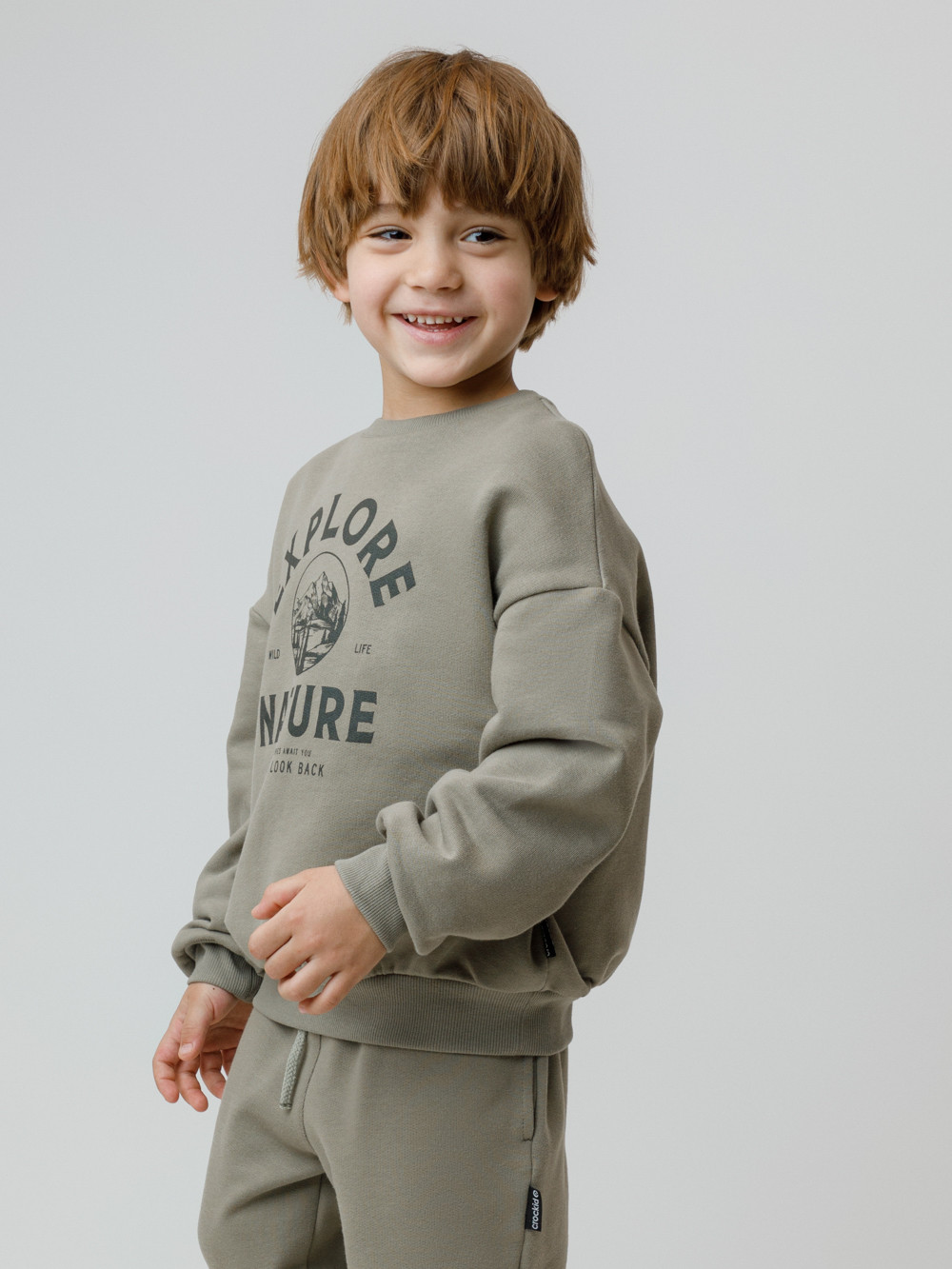 Свитшот для мальчика из высококачественного петельчатого футера. Обтачка горловины, манжеты и пояс выполнены из эластичного полотна. Для удобства одевания имеется застёжка на кнопки в размерах 92 и 98. Оригинальный принт нанесён с помощью стойких текстильных гипоаллергенных красителей.