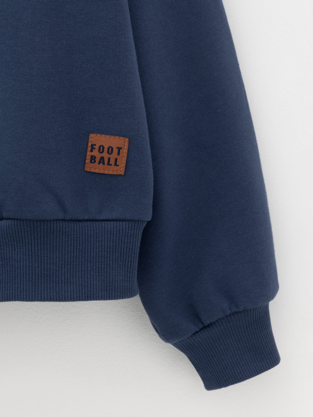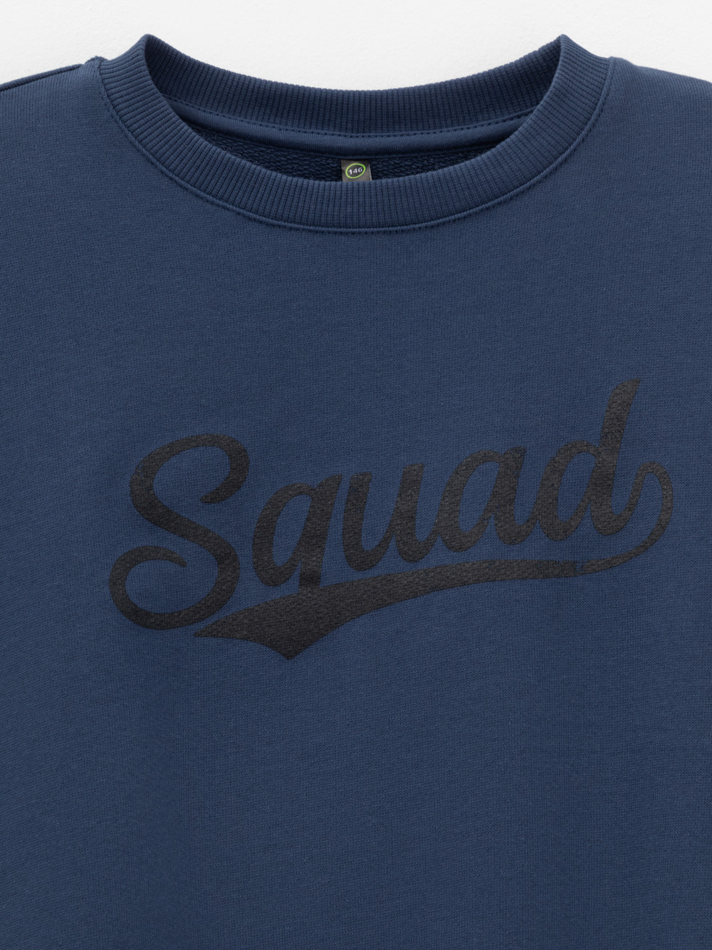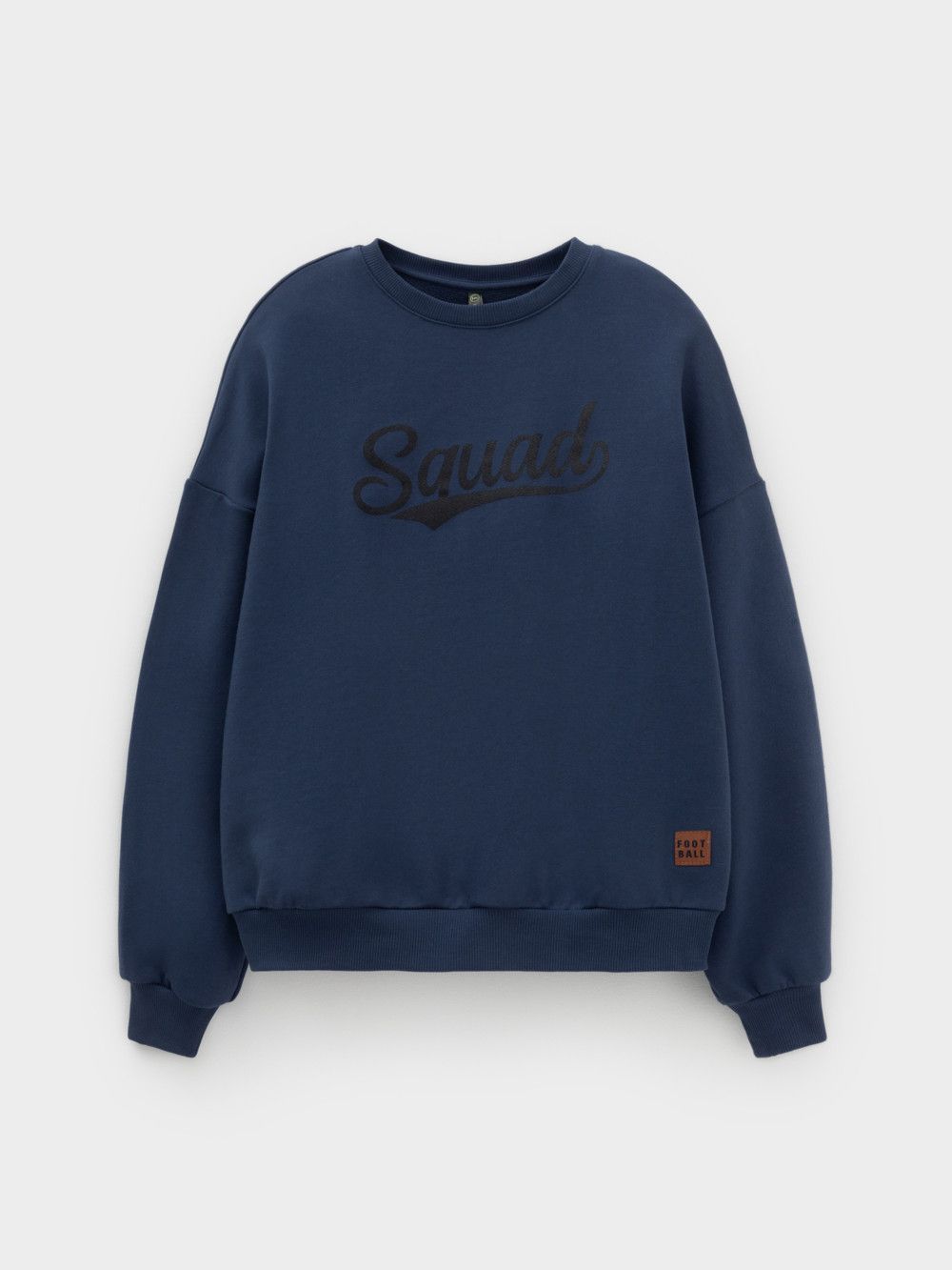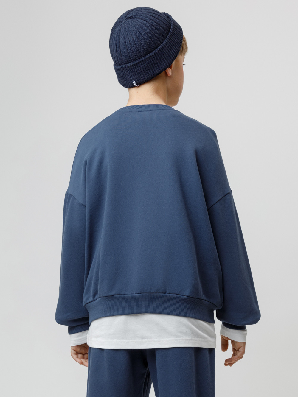 Свитшот для мальчика из высококачественного петельчатого футера. Обтачка горловины, манжеты и пояс выполнены из эластичного полотна. Оригинальный принт нанесён с помощью стойких текстильных гипоаллергенных красителей.