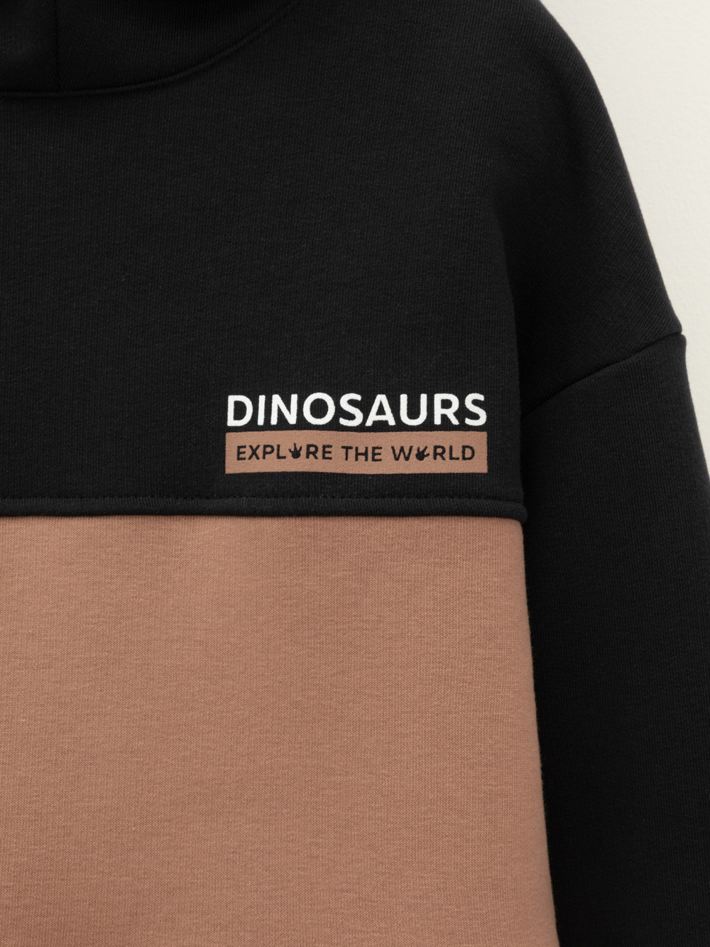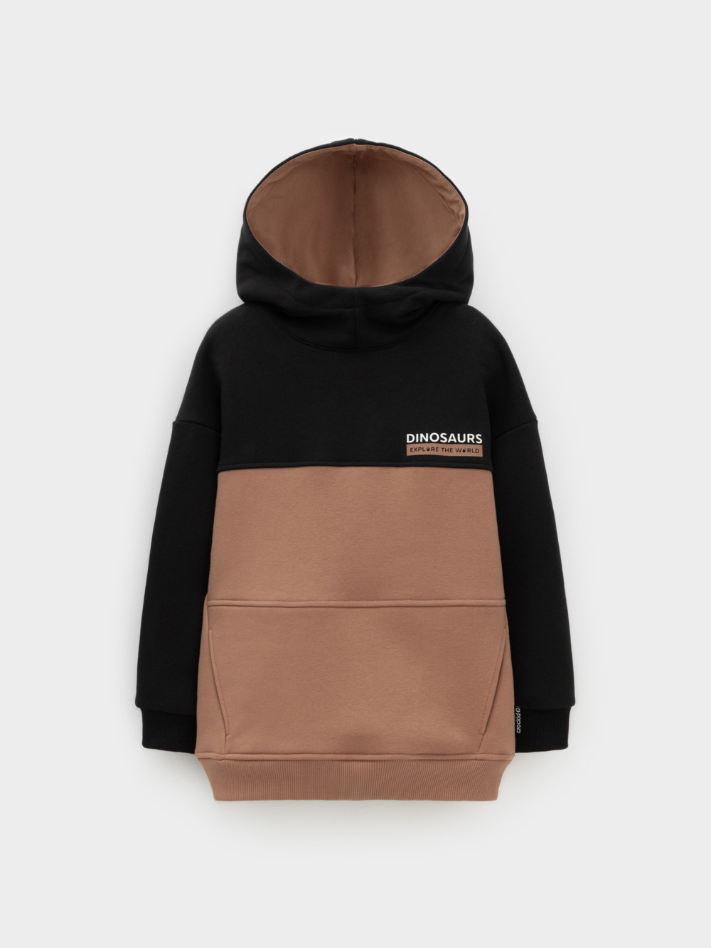 Худи с капюшоном для мальчика из тёплого футера с начёсом. Пояс и манжеты выполнены из мягкого эластичного трикотажа. Спереди карманы. Худи сохраняет форму и стойкий цвет после многочисленных стирок и идеально подходит на каждый день. Оригинальный принт выполнен из стойких текстильных гипоаллергенных красителей. Все трикотажные полотна производятся в соответствии с нормами швейцарского сертификата ЭкоТекс.