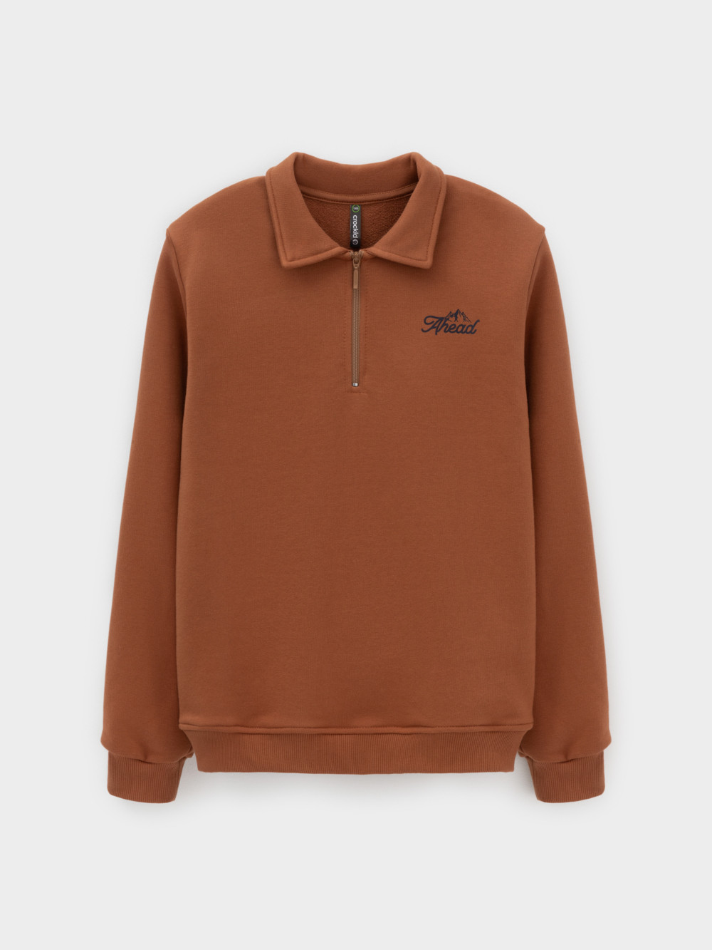 Свитшот с воротником для мальчика. Изготовлен из высококачественного петельчатого футера. В составе 80% натурального хлопка и 20% полиэстера, при этом полиэстер ввязан внутрь по особой технологии и не соприкасается с кожей. Манжеты и пояс выполнены из эластичного полотна. На груди короткая застёжка на молнию. Оригинальный принт выполнен из стойких текстильных гипоаллергенных красителей. Изделие сохраняет цвет и форму после многократных стирок.