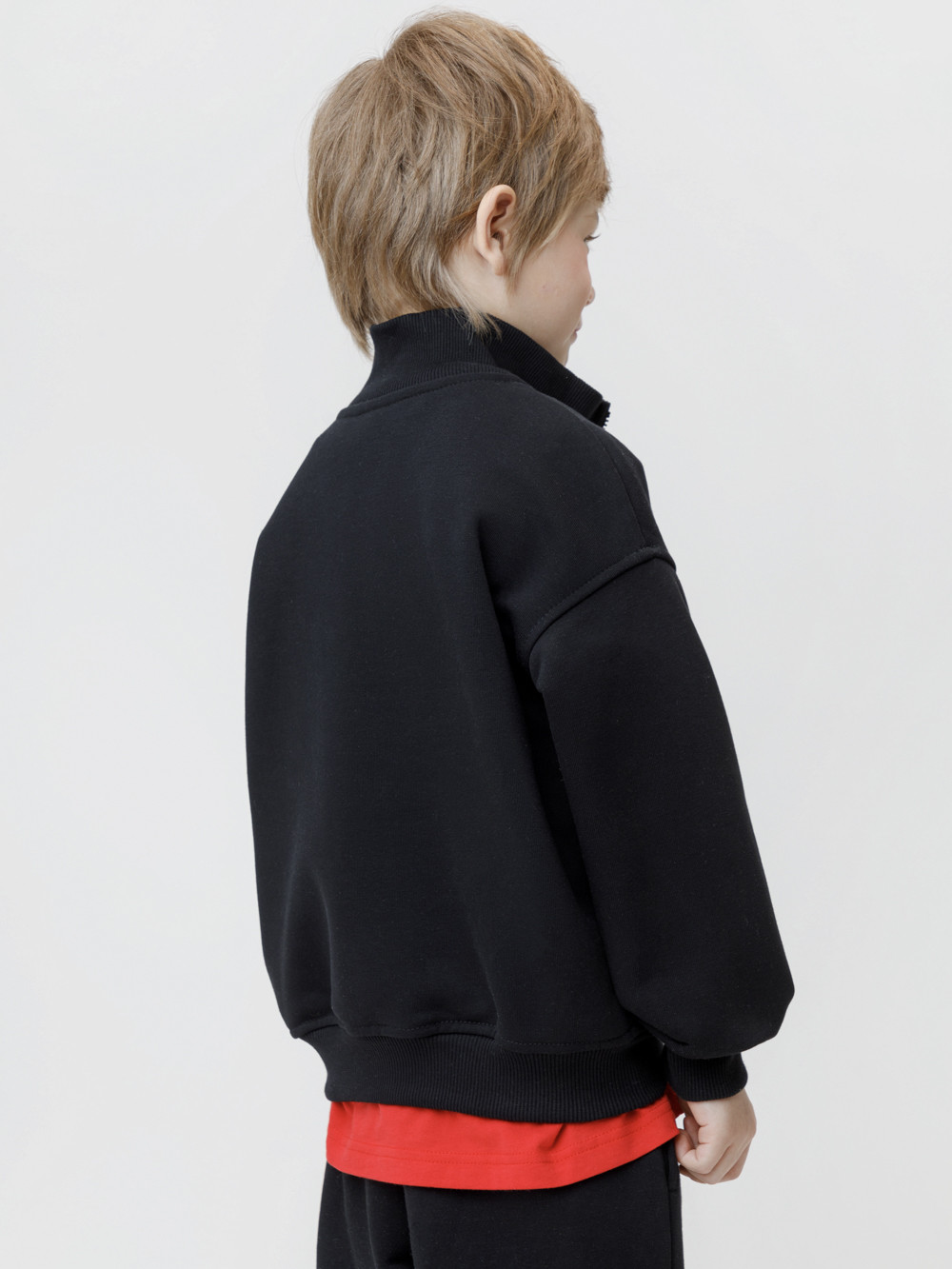 Джемпер из мягкого петельчатого трикотажа для мальчика. У изделия эластичные горловина, манжеты и пояс. Застёгивается на короткую молнию. Оригинальный принт выполнен из стойких текстильных гипоаллергенных красителей. Джемпер сохраняет цвет и форму после многократных стирок. Все трикотажные полотна производятся в соответствии с нормами швейцарского сертификата ЭкоТекс.