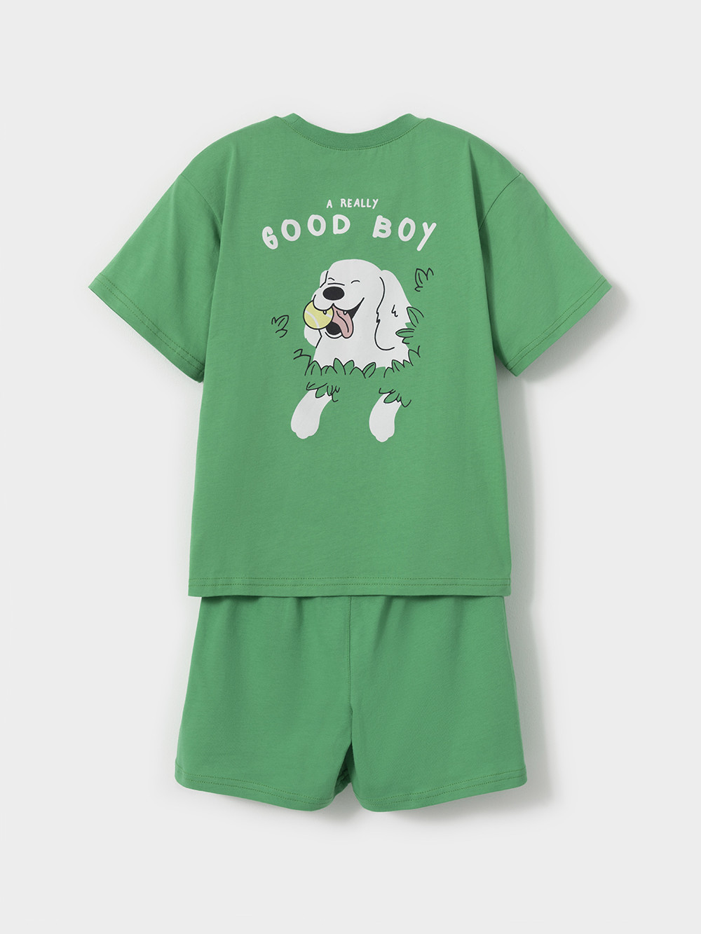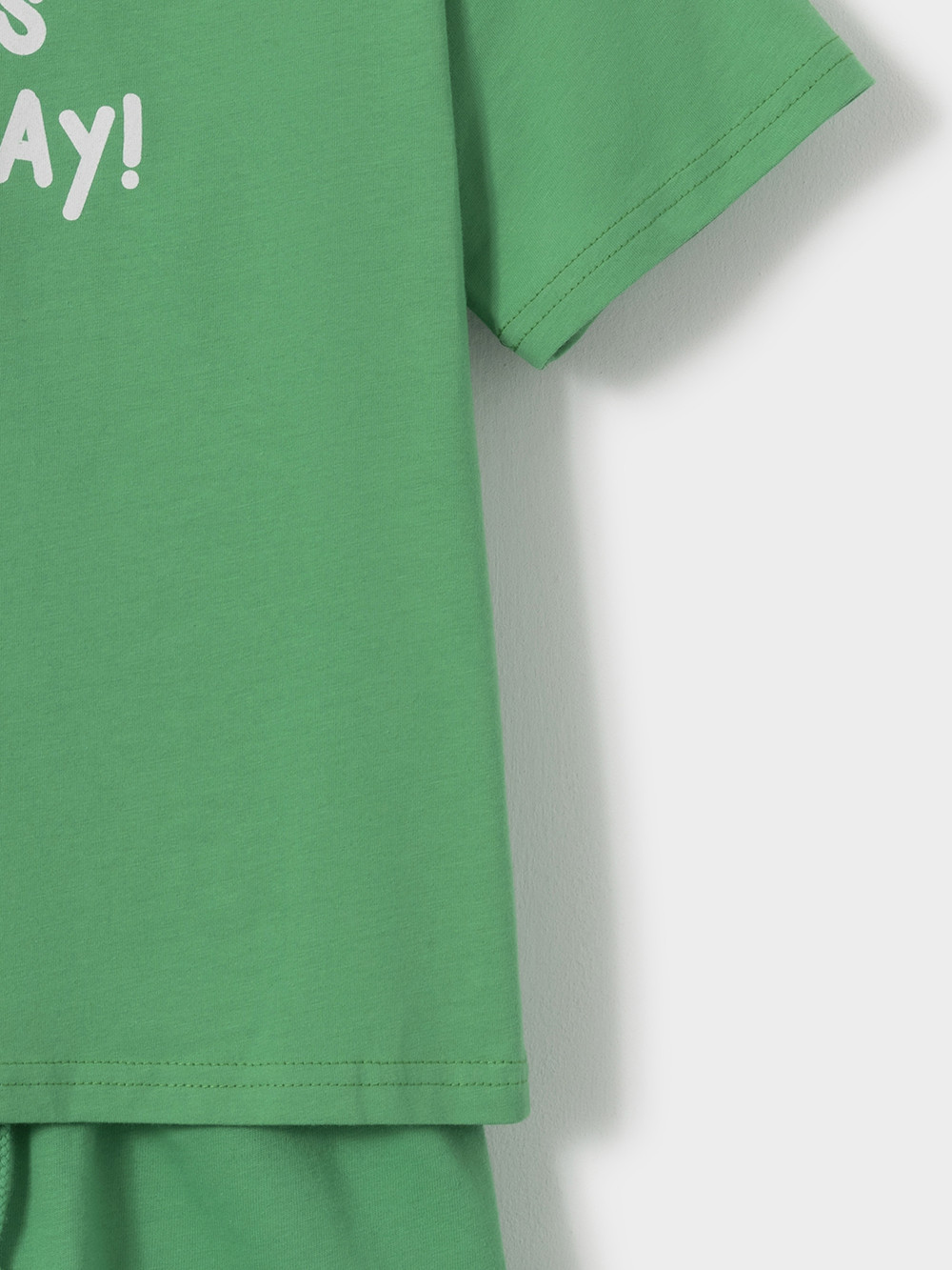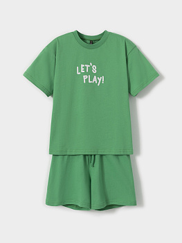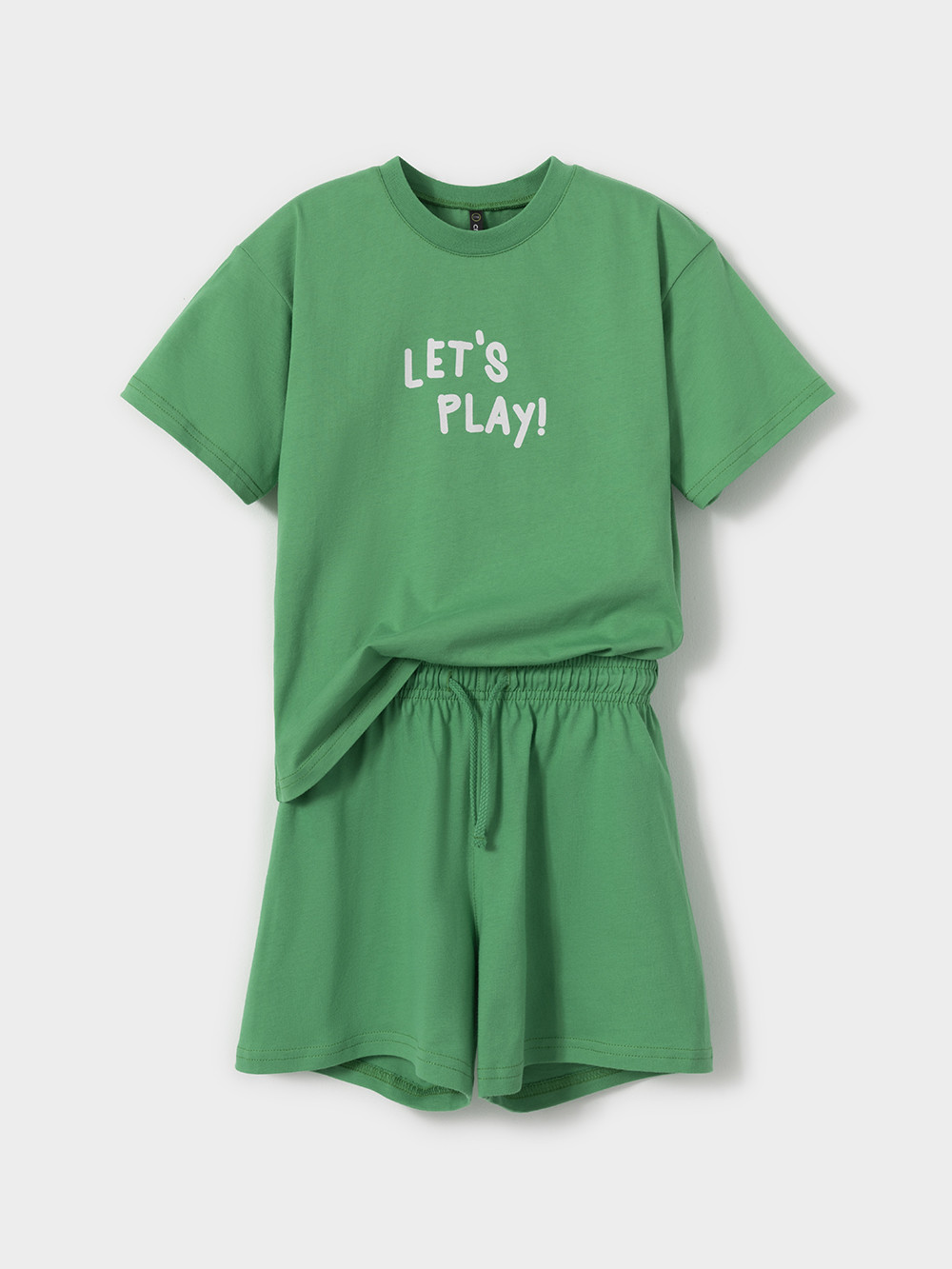 Набор трикотажный для мальчика: футболка с короткими спущенными рукавами и свободные шорты на резинке. Комплект изготовлен из гладкого трикотажа супрем, который произведён из 100% натурального хлопка высокого качества. Изделия отлично дышат, а свободный крой не стесняет движения, поэтому футболка и шорты комфортны для активных игр, отдыха и занятий спортом. Оригинальный принт выполнен из стойких текстильных гипоаллергенных красителей. Комплект сохраняет цвет и форму после многократных стирок. Все трикотажные полотна производятся в соответствии с нормами швейцарского сертификата ЭкоТекс.