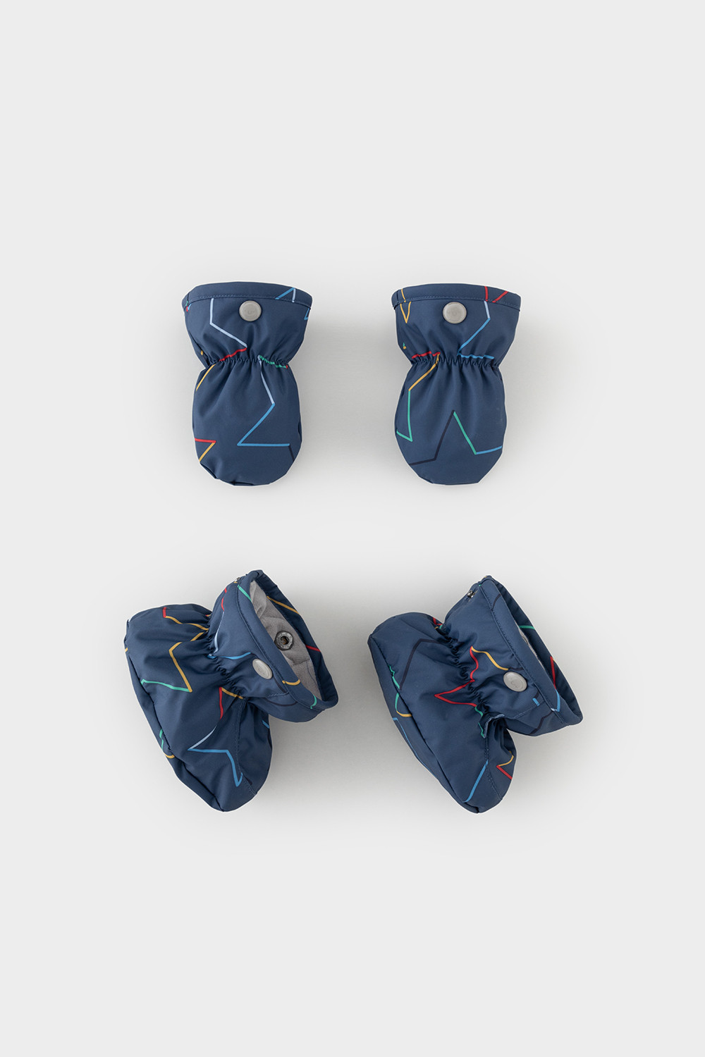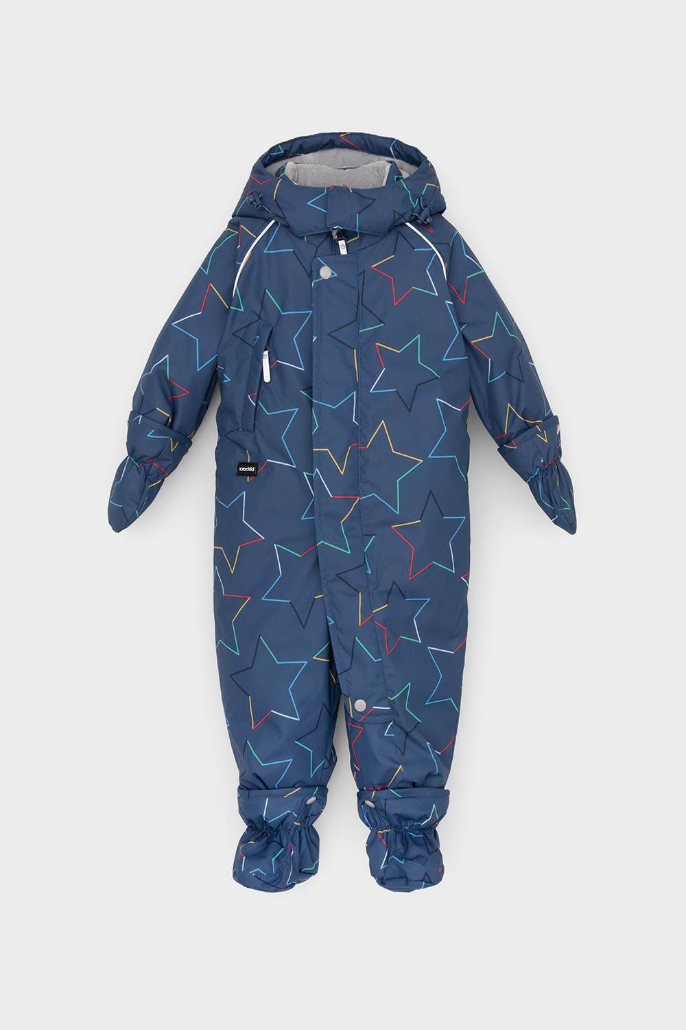 • Дополнительно в размерах 68-74, 74-80, 80-86  пристегивающиеся утепленные варежки и пинетки.