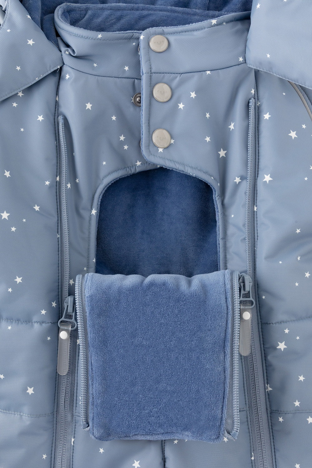 • С помощью дополнительных молний комбинезон превращается в конверт