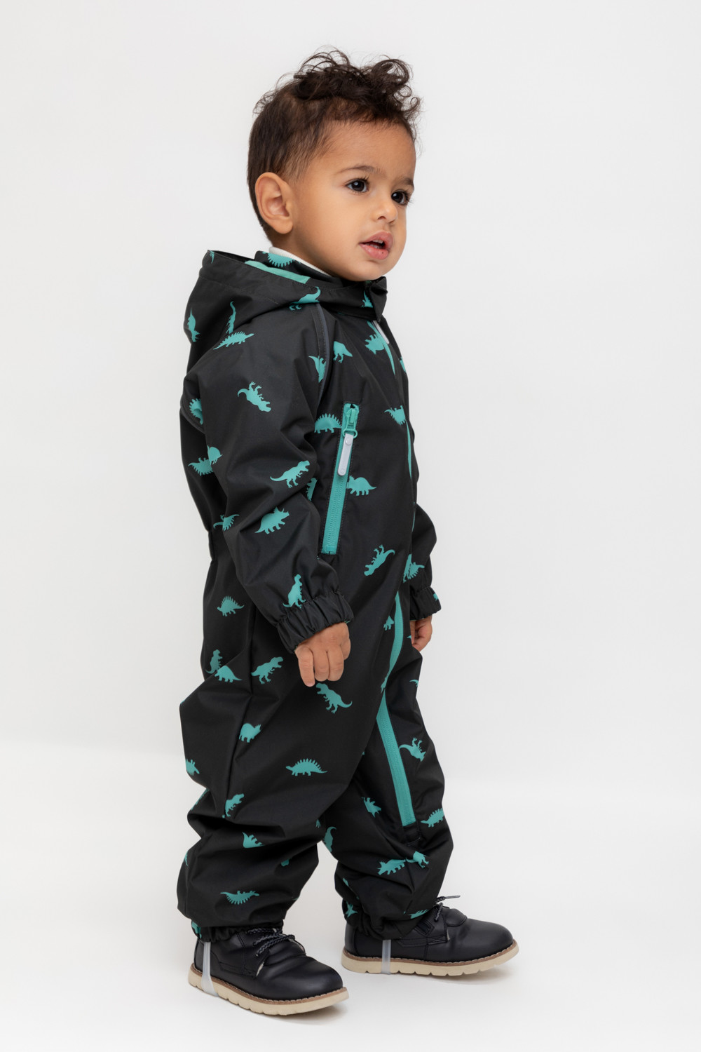 Ветровочный комбинезон ясельный из мембранной ткани с дополнительной тефлоновой обработкой. Данный вид обработки предохраняет изделие от загрязнения и лучше отводит влагу. Подклад из 100% хлопка. У изделия удлиненная молния для легкого одевания с защитой подбородка. Утяжка на капюшоне с потайными стопперами. По низу рукавов и брючин, а также на спинке изделия эластичная резинка для лучшего прилегания. Для фиксации комбинезона используются съемные силиконовые штрипки. В размере 74-80 функциональные отвороты на рукавах и брючинах. Во всех изделиях верхнего ассортимента для безопасности ребенка предусмотрены светоотражающие элементы.