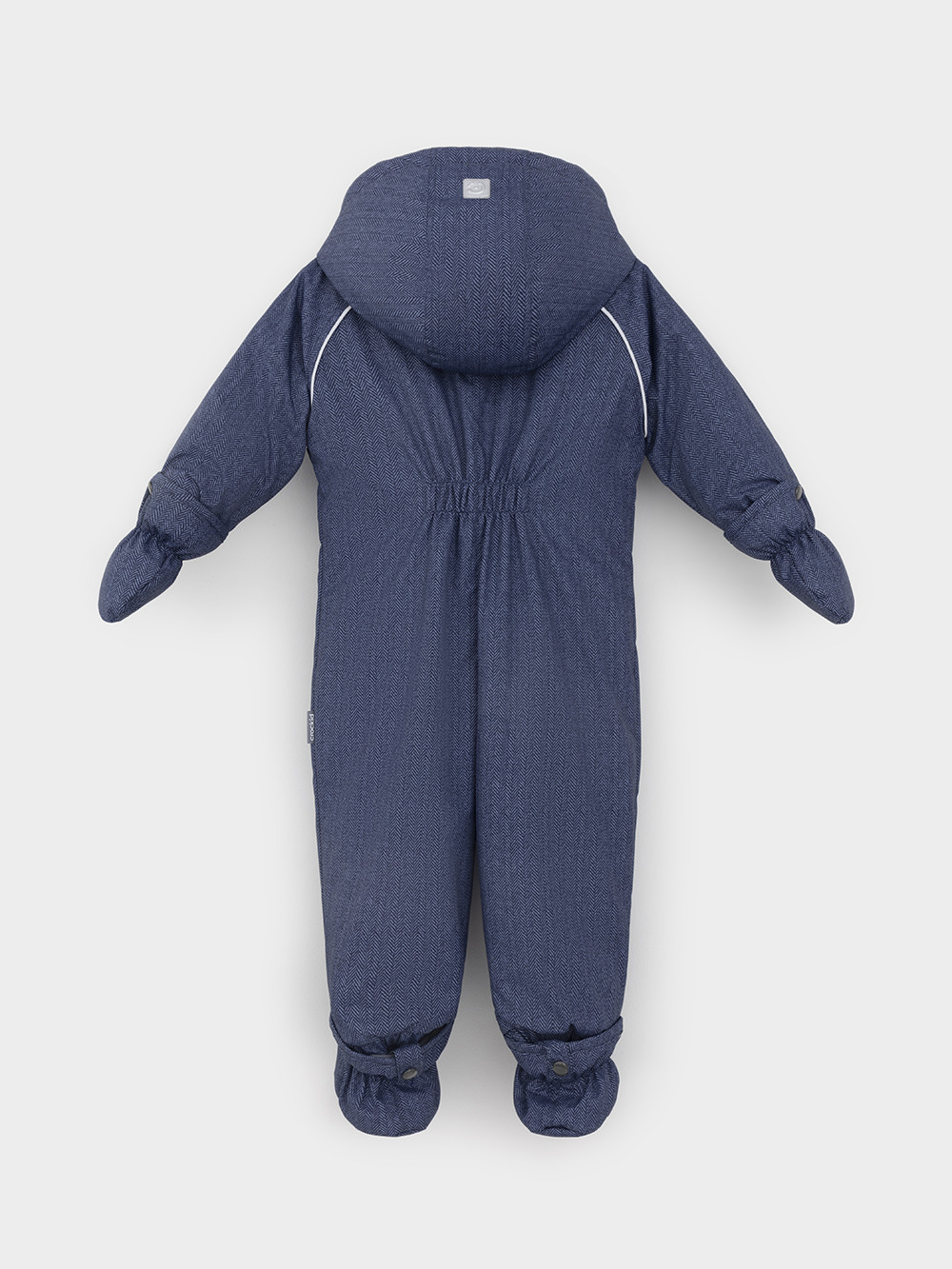 Зимний комбинезон ясельный с утеплителем SEE®: 250 г/м2. Выполнен из мембранной ткани с дополнительной тефлоновой обработкой, которая предохраняет изделие от загрязнений и отталкивает влагу. Подклад выполнен из 100% хлопка. Комбинезон застёгивается на молнию и внешнюю планку на липучках, предусмотрена защита подбородка. Несъёмный капюшон имеет эластичную утяжку со стопперами. Резинка по спинке для лучшего прилегания. На груди карман на молнии. По рукавам и низу изделия эластичные манжеты, на ножках отстёгивающиеся силиконовые штрипки. В размерах 74-80 и 80-86 в комплекте идут рукавицы и пинетки. Во всех изделиях верхнего ассортимента для безопасности ребёнка предусмотрены светоотражающие элементы.