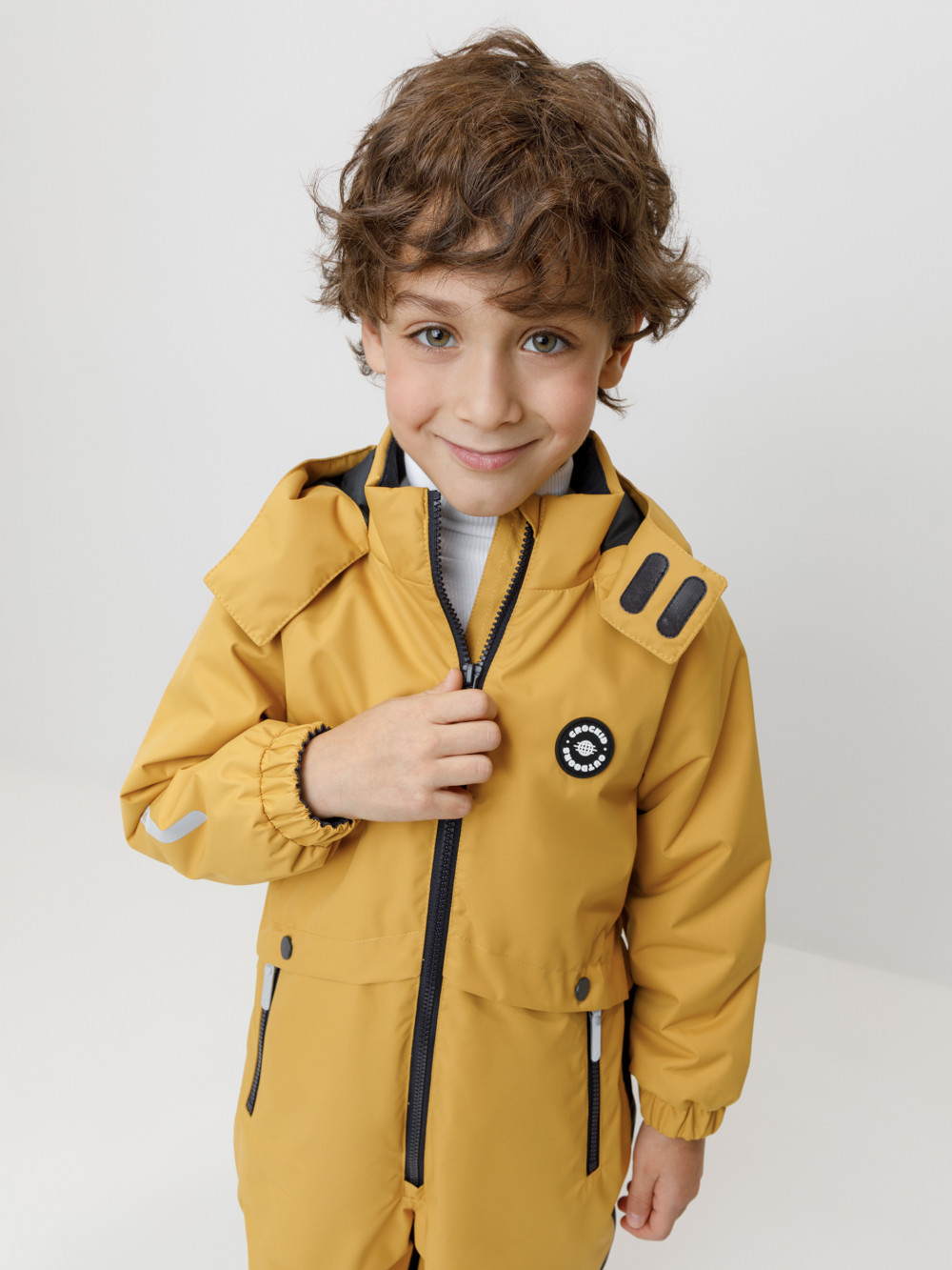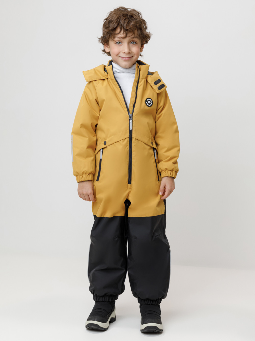 Демисезонный комбинезон для мальчика с утеплителем SEE®, 120 г/м2. Выполнен из мембранной ткани с дополнительной тефлоновой обработкой. Данный вид обработки предохраняет изделие от загрязнения и лучше отводит влагу. Подклад из 100% полиэстера. Для удобного одевания комбинезон застёгивается на удлинённую молнию с защитой подбородка. Капюшон не снимается, по верхнему краю есть эластичная вставка. По низу рукавов и брючин, а также на спинке изделия предусмотрены эластичные резинки для лучшего прилегания. Для фиксации комбинезона используются съёмные силиконовые штрипки. Во всех изделиях верхнего ассортимента для безопасности ребёнка предусмотрены светоотражающие элементы.