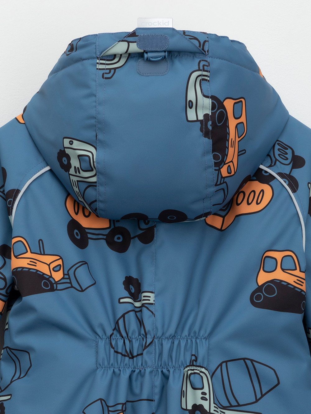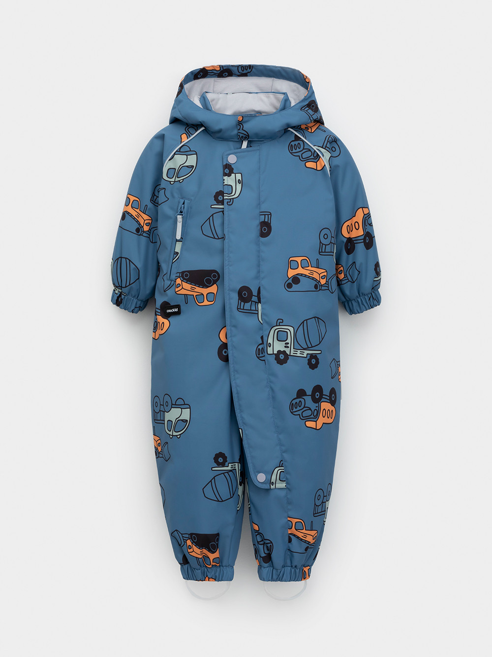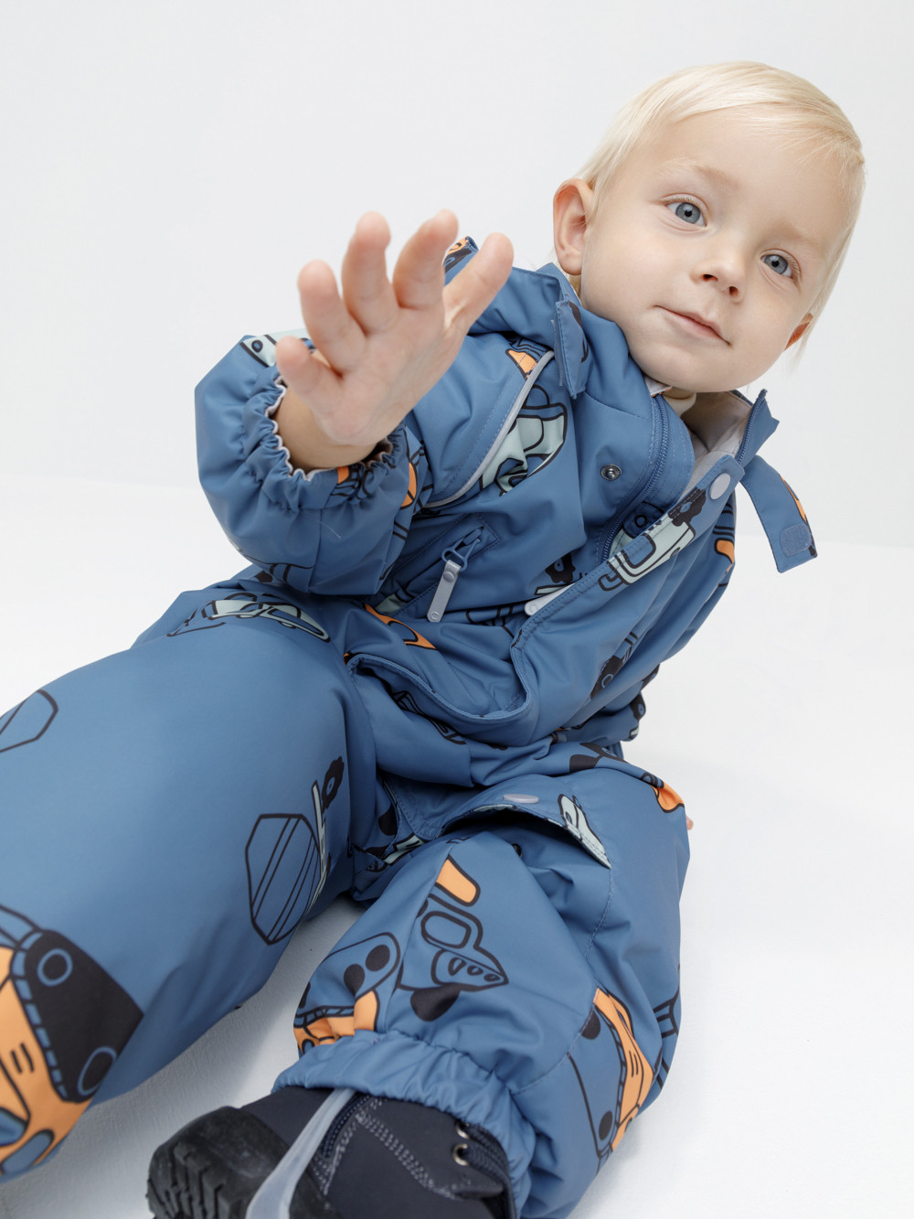 Демисезонный комбинезон ясельный с утеплителем Fellex®, 120 г/м2. Выполнен из мембранной ткани с дополнительной тефлоновой обработкой. Данный вид обработки предохраняет изделие от загрязнения и лучше отводит влагу. Подклад из 100% хлопка. Для удобного одевания комбинезон застёгивается на удлинённую молнию с защитой подбородка. Ветрозащитная планка фиксируется на липучках и кнопках. Утяжка на капюшоне с потайным стоппером. По низу рукавов и брючин, а также на спинке изделия предусмотрены эластичные резинки для лучшего прилегания. Для фиксации комбинезона используются съёмные силиконовые штрипки. В размере 74-80 есть функциональные отвороты на рукавах и брючинах. Во всех изделиях верхнего ассортимента для безопасности ребёнка предусмотрены светоотражающие элементы.