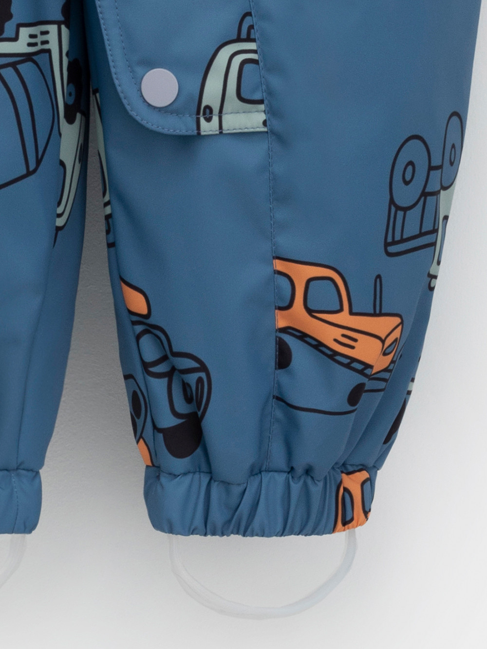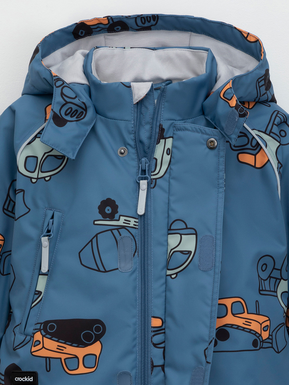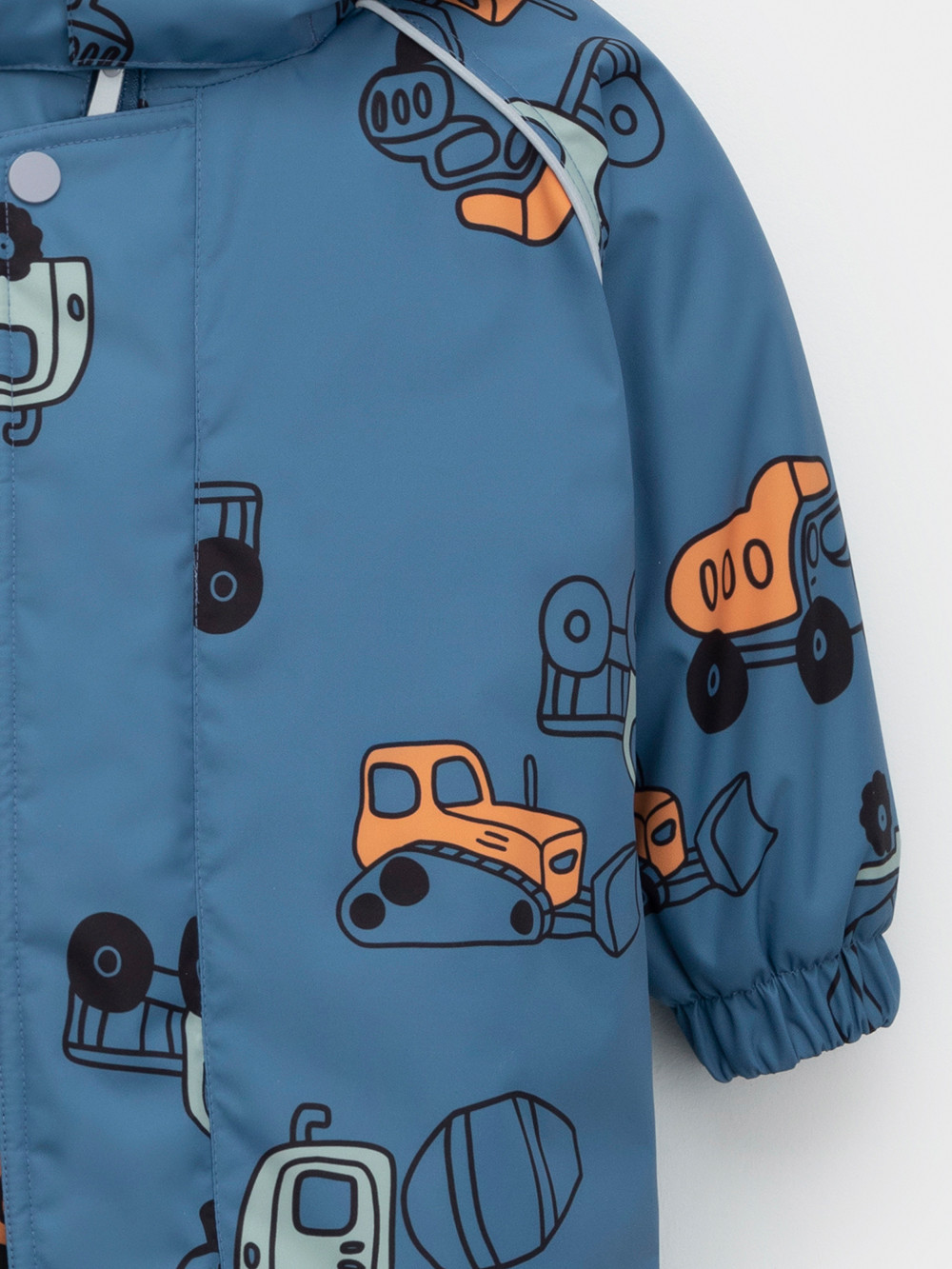 Демисезонный комбинезон ясельный с утеплителем Fellex®, 120 г/м2. Выполнен из мембранной ткани с дополнительной тефлоновой обработкой. Данный вид обработки предохраняет изделие от загрязнения и лучше отводит влагу. Подклад из 100% хлопка. Для удобного одевания комбинезон застёгивается на удлинённую молнию с защитой подбородка. Ветрозащитная планка фиксируется на липучках и кнопках. Утяжка на капюшоне с потайным стоппером. По низу рукавов и брючин, а также на спинке изделия предусмотрены эластичные резинки для лучшего прилегания. Для фиксации комбинезона используются съёмные силиконовые штрипки. В размере 74-80 есть функциональные отвороты на рукавах и брючинах. Во всех изделиях верхнего ассортимента для безопасности ребёнка предусмотрены светоотражающие элементы.