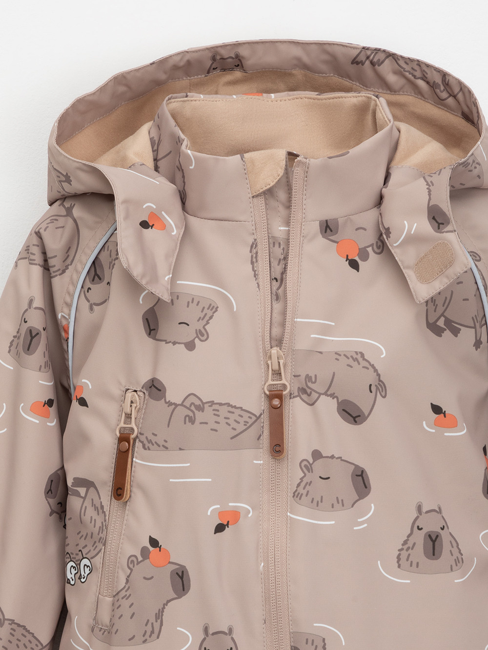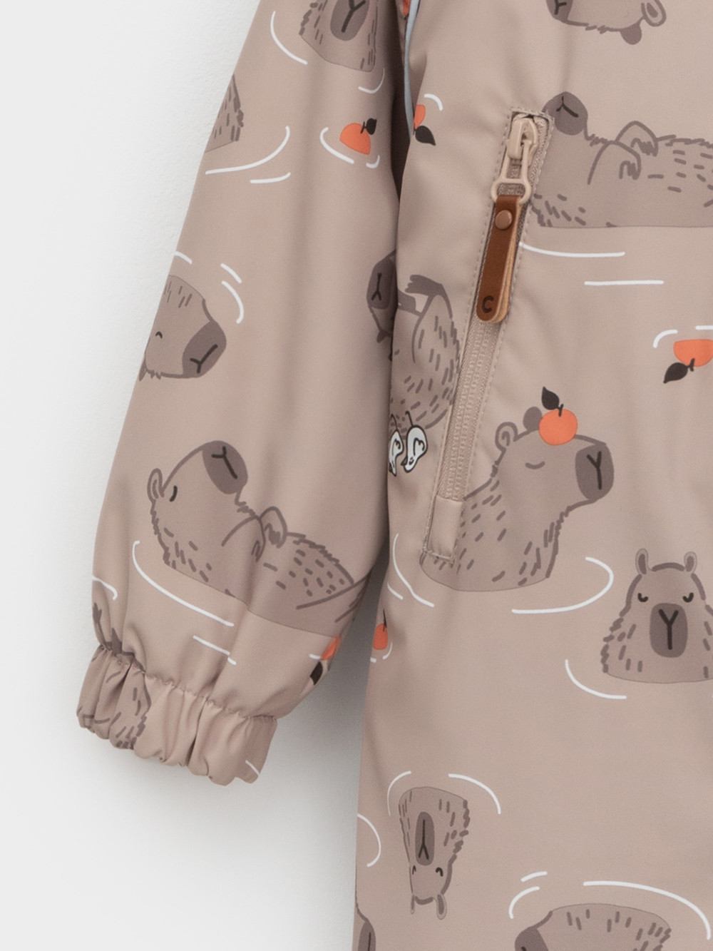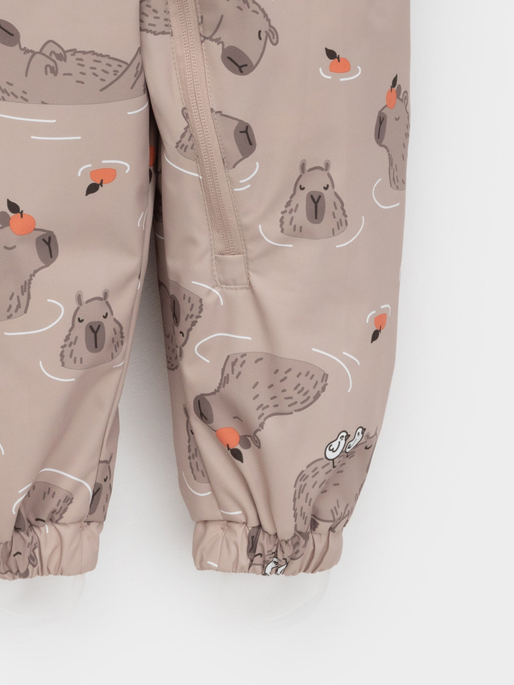 Ветровочный комбинезон ясельный без утеплителя. Выполнен из мембранной ткани с дополнительной тефлоновой обработкой. Данный вид обработки предохраняет изделие от загрязнения и лучше отводит влагу. Подклад из 100% хлопка. Для удобного одевания комбинезон застёгивается на удлинённую молнию с защитой подбородка. Утяжка на капюшоне с потайным стоппером. По низу рукавов и брючин, а также на спинке изделия предусмотрены эластичные резинки для лучшего прилегания. Для фиксации комбинезона используются съёмные силиконовые штрипки. В размерах 68-74 и 74-80 есть функциональные отвороты на рукавах и брючинах. Во всех изделиях верхнего ассортимента для безопасности ребёнка предусмотрены светоотражающие элементы.