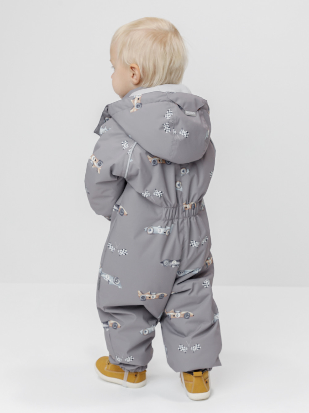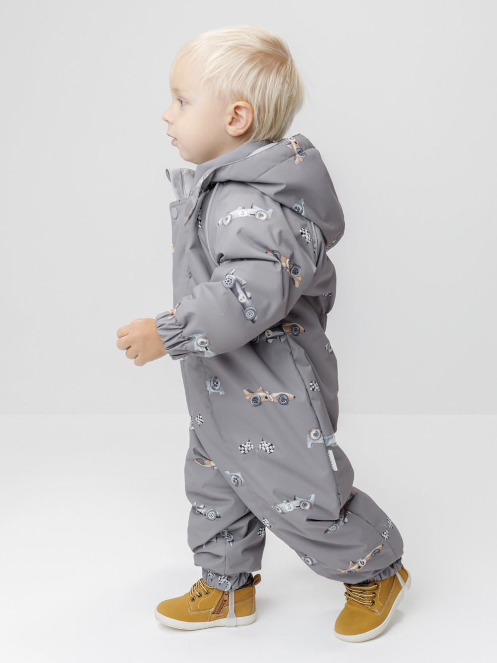 Демисезонный комбинезон ясельный с утеплителем Fellex®, 120 г/м2. Выполнен из мембранной ткани с дополнительной тефлоновой обработкой. Данный вид обработки предохраняет изделие от загрязнения и лучше отводит влагу. Подклад из 100% хлопка. Для удобного одевания комбинезон застёгивается на удлинённую молнию с защитой подбородка. Ветрозащитная планка фиксируется на липучках и кнопках. Утяжка на капюшоне с потайным стоппером. По низу рукавов и брючин, а также на спинке изделия предусмотрены эластичные резинки для лучшего прилегания. Для фиксации комбинезона используются съёмные силиконовые штрипки. В размерах 62-68, 68-74 и 74-80 есть функциональные отвороты на рукавах и брючинах. Во всех изделиях верхнего ассортимента для безопасности ребёнка предусмотрены светоотражающие элементы.