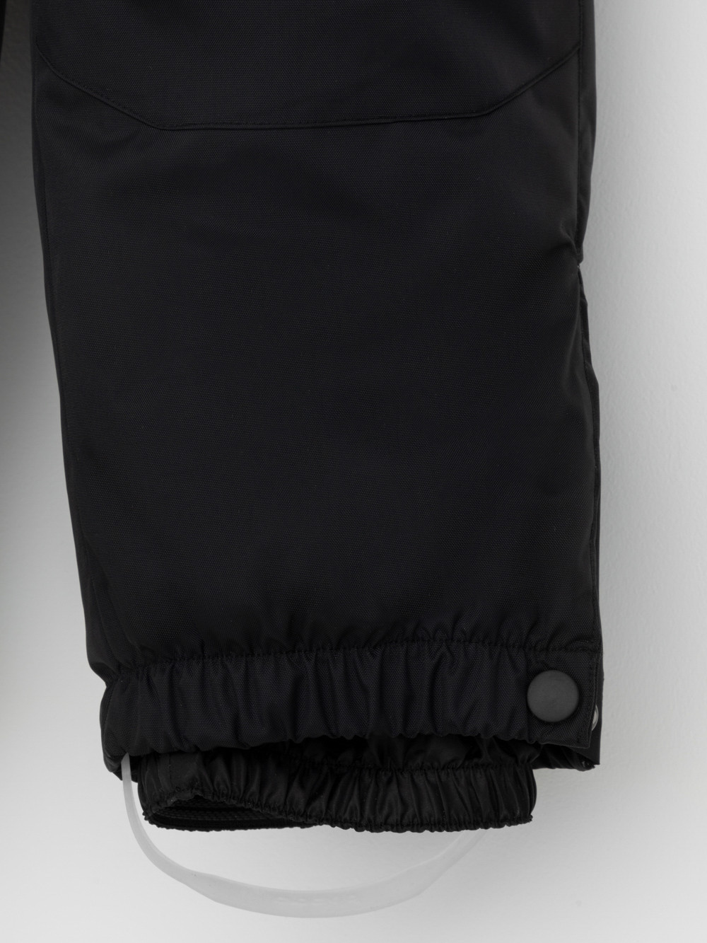 Зимний комбинезон для мальчика с утеплителем Fellex®: 250 г/м2 . Выполнен из мембранной ткани с дополнительной тефлоновой обработкой, которая предохраняет изделие от загрязнений и отталкивает влагу. Подклад выполнен из 100% полиэстера Tricot. Комбинезон застёгивается на молнию и внешнюю планку на липучках и кнопках, предусмотрена защита подбородка. Съёмный капюшон имеет эластичную утяжку со стопперами. Резинка по спинке обеспечивает лучшее прилегание. По бокам два кармана на молнии. Эластичные манжеты на рукавах  регулируются по ширине с помощью липучки, по низу изделия - с помощью кнопки. Внутренняя противоснежная юбка защищает обувь от попадания снега и удерживает комбинезон в закреплённом положении. В размерах с 98-104 по 116-122  предусмотрены отстёгивающиеся штрипки. Во всех изделиях верхнего ассортимента для безопасности ребёнка предусмотрены светоотражающие элементы.