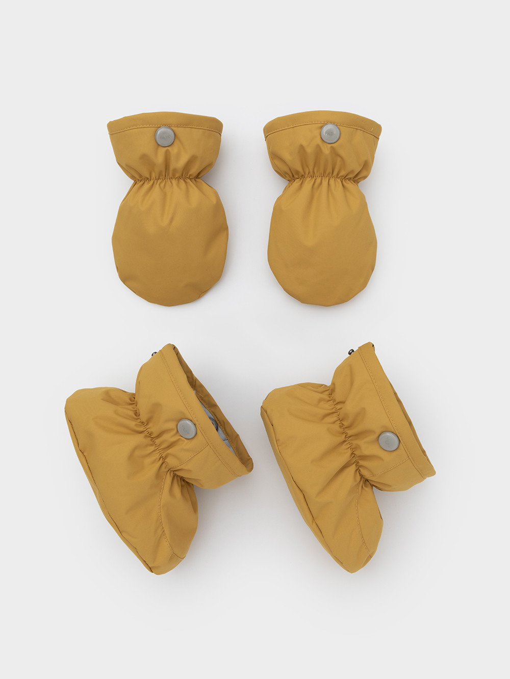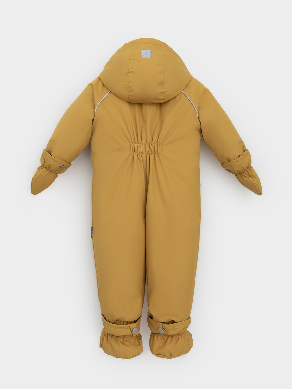 Зимний комбинезон ясельный с утеплителем SEE®: 250 г/м2. Выполнен из мембранной ткани с дополнительной тефлоновой обработкой, которая предохраняет изделие от загрязнений и отталкивает влагу. Подклад выполнен из 100% хлопка. Комбинезон застёгивается на молнию и внешнюю планку на липучках, предусмотрена защита подбородка. Несъёмный капюшон имеет эластичную утяжку со стопперами. Резинка по спинке для лучшего прилегания. На груди карман на молнии. По рукавам и низу изделия эластичные манжеты, на ножках отстёгивающиеся силиконовые штрипки. В размерах 74-80 и 80-86 в комплекте идут рукавицы и пинетки. Во всех изделиях верхнего ассортимента для безопасности ребёнка предусмотрены светоотражающие элементы.