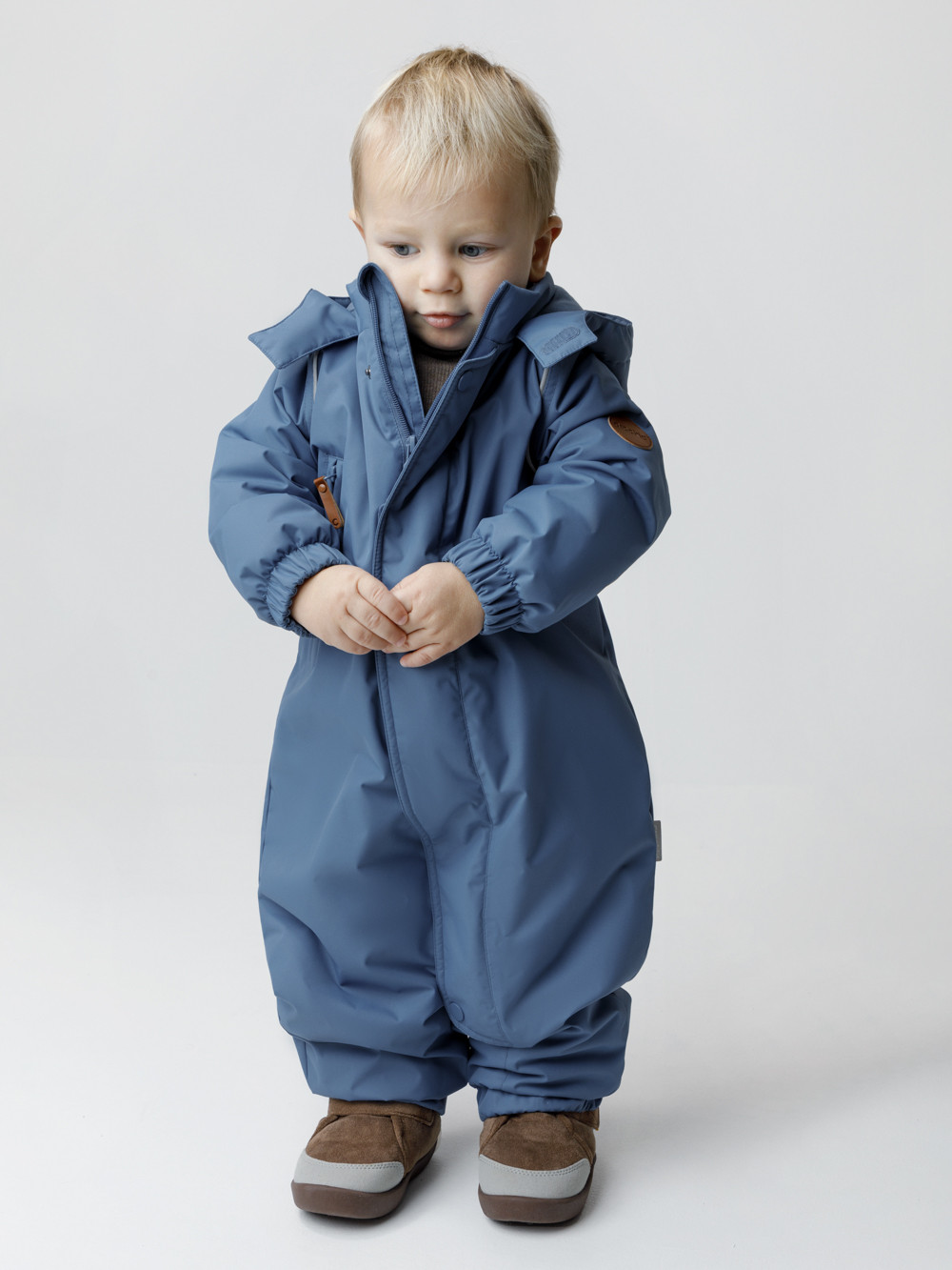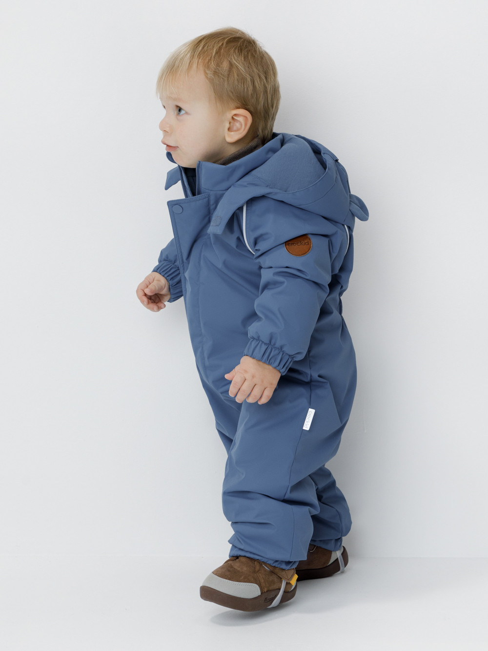 Демисезонный комбинезон ясельный с утеплителем Fellex®, 120 г/м2. Выполнен из мембранной ткани с дополнительной тефлоновой обработкой. Данный вид обработки предохраняет изделие от загрязнения и лучше отводит влагу. Подклад из 100% хлопка. Для удобного одевания комбинезон застёгивается на удлинённую молнию с защитой подбородка. Ветрозащитная планка фиксируется на липучках и кнопках. Утяжка на капюшоне с потайным стоппером. По низу рукавов и брючин, а также на спинке изделия предусмотрены эластичные резинки для лучшего прилегания. Для фиксации комбинезона используются съёмные силиконовые штрипки. В размере 74-80 есть функциональные отвороты на рукавах и брючинах. Во всех изделиях верхнего ассортимента для безопасности ребёнка предусмотрены светоотражающие элементы.