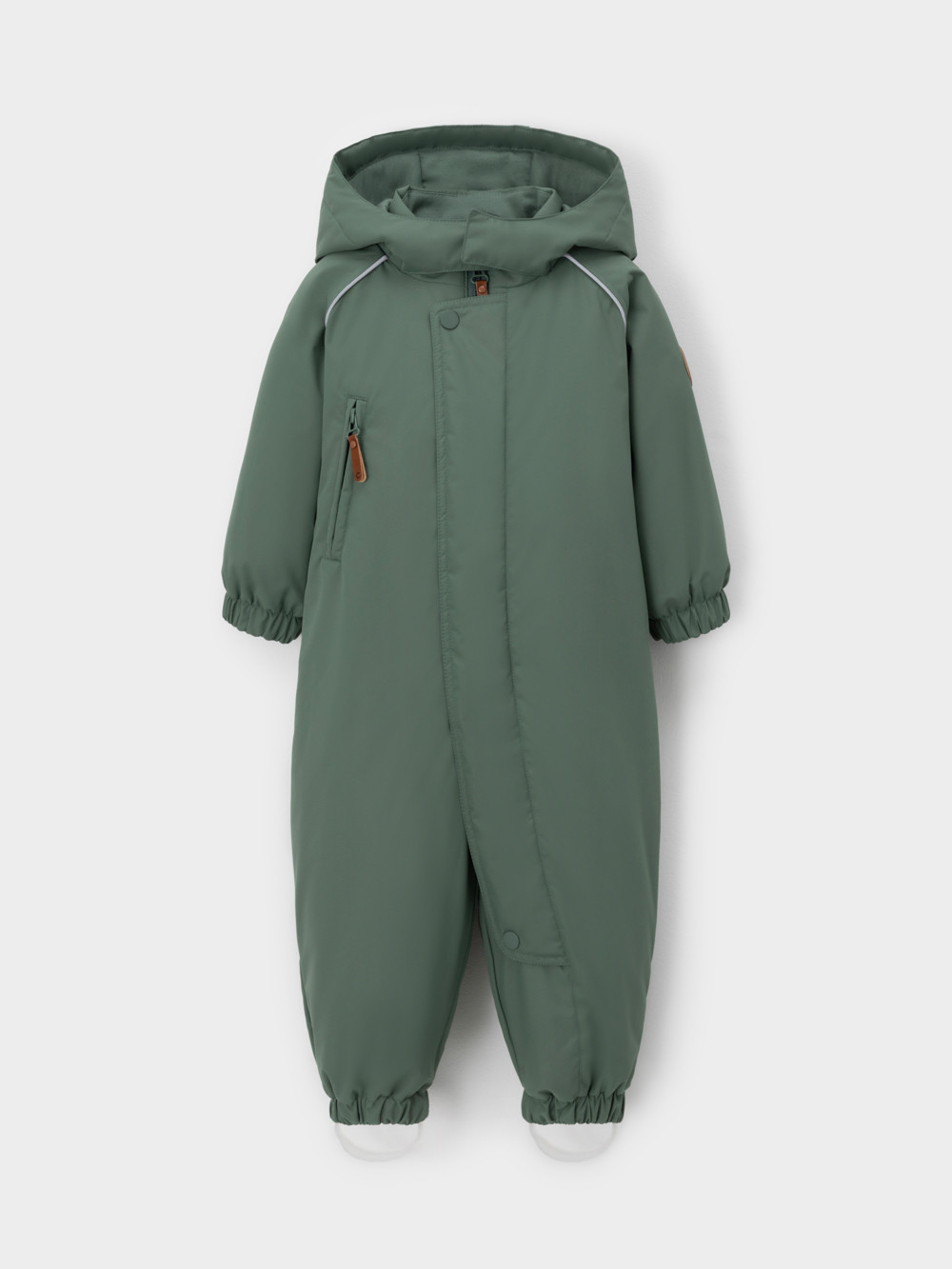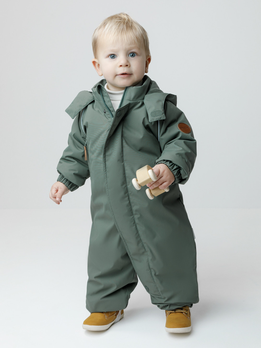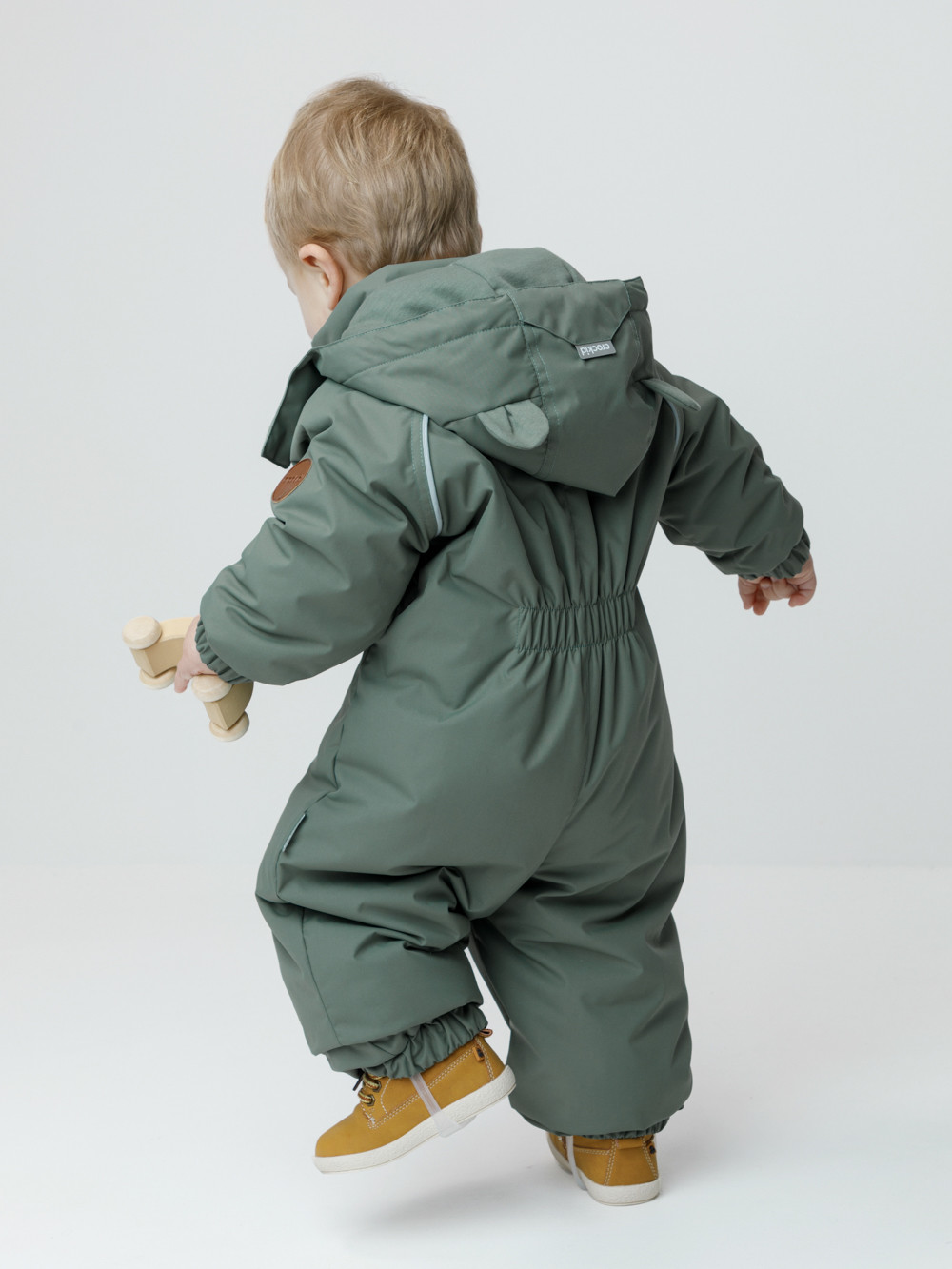 Демисезонный комбинезон ясельный с утеплителем Fellex®, 120 г/м2. Выполнен из мембранной ткани с дополнительной тефлоновой обработкой. Данный вид обработки предохраняет изделие от загрязнения и лучше отводит влагу. Подклад из 100% хлопка. Для удобного одевания комбинезон застёгивается на удлинённую молнию с защитой подбородка. Ветрозащитная планка фиксируется на липучках и кнопках. Утяжка на капюшоне с потайным стоппером. По низу рукавов и брючин, а также на спинке изделия предусмотрены эластичные резинки для лучшего прилегания. Для фиксации комбинезона используются съёмные силиконовые штрипки. В размере 74-80 есть функциональные отвороты на рукавах и брючинах. Во всех изделиях верхнего ассортимента для безопасности ребёнка предусмотрены светоотражающие элементы.