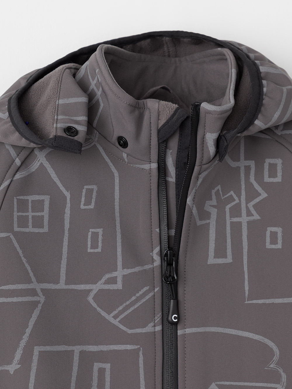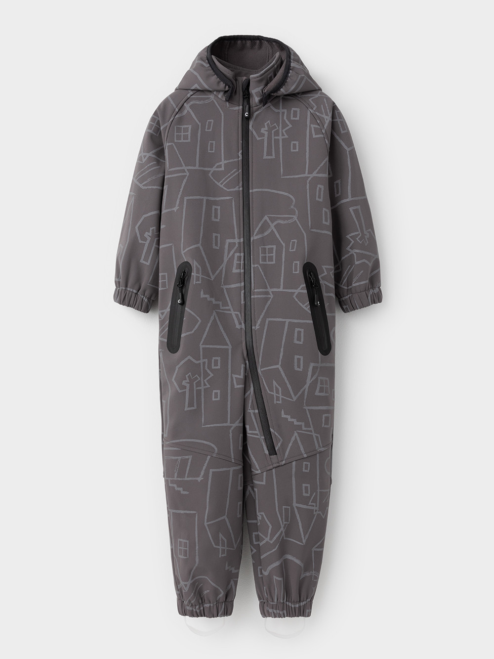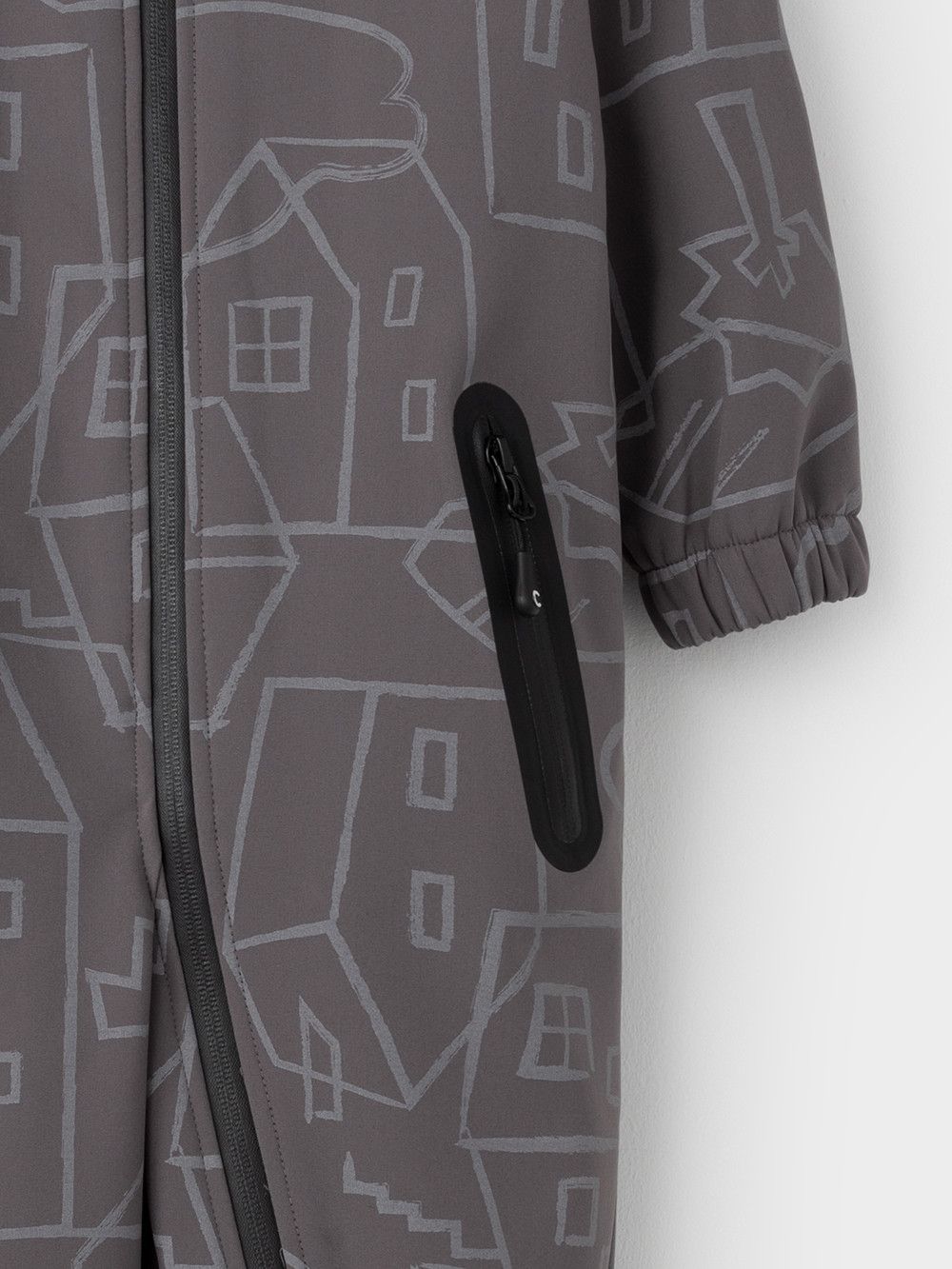 Демисезонный софтшелл комбинезон для мальчика со светоотражающим принтом. Выполнен из мембранной ткани, которая предохраняет изделие от загрязнения и лучше отводит влагу. Подклад из 100% полиэстера. Для удобного одевания комбинезон застёгивается на удлинённую молнию с защитой подбородка. Съемный капюшон на кнопках, по краю есть эластичная вставка. По низу рукавов и брючин, а также на спинке изделия предусмотрены эластичные резинки для лучшего прилегания. Для фиксации комбинезона используются съёмные силиконовые штрипки во всех размерах.