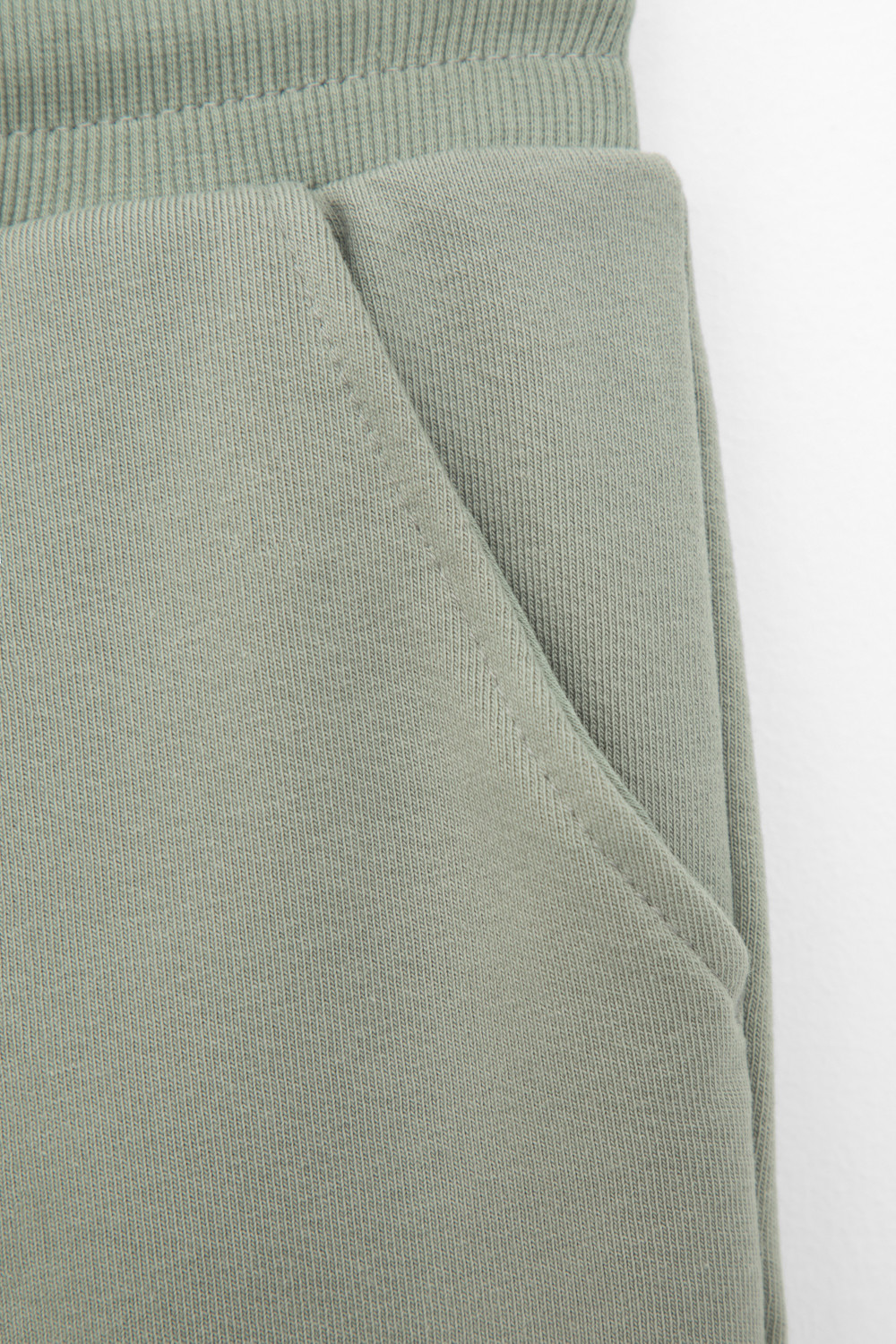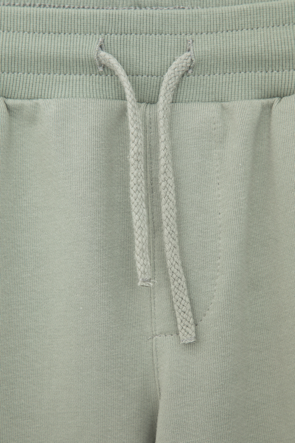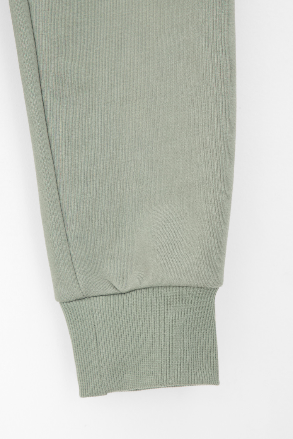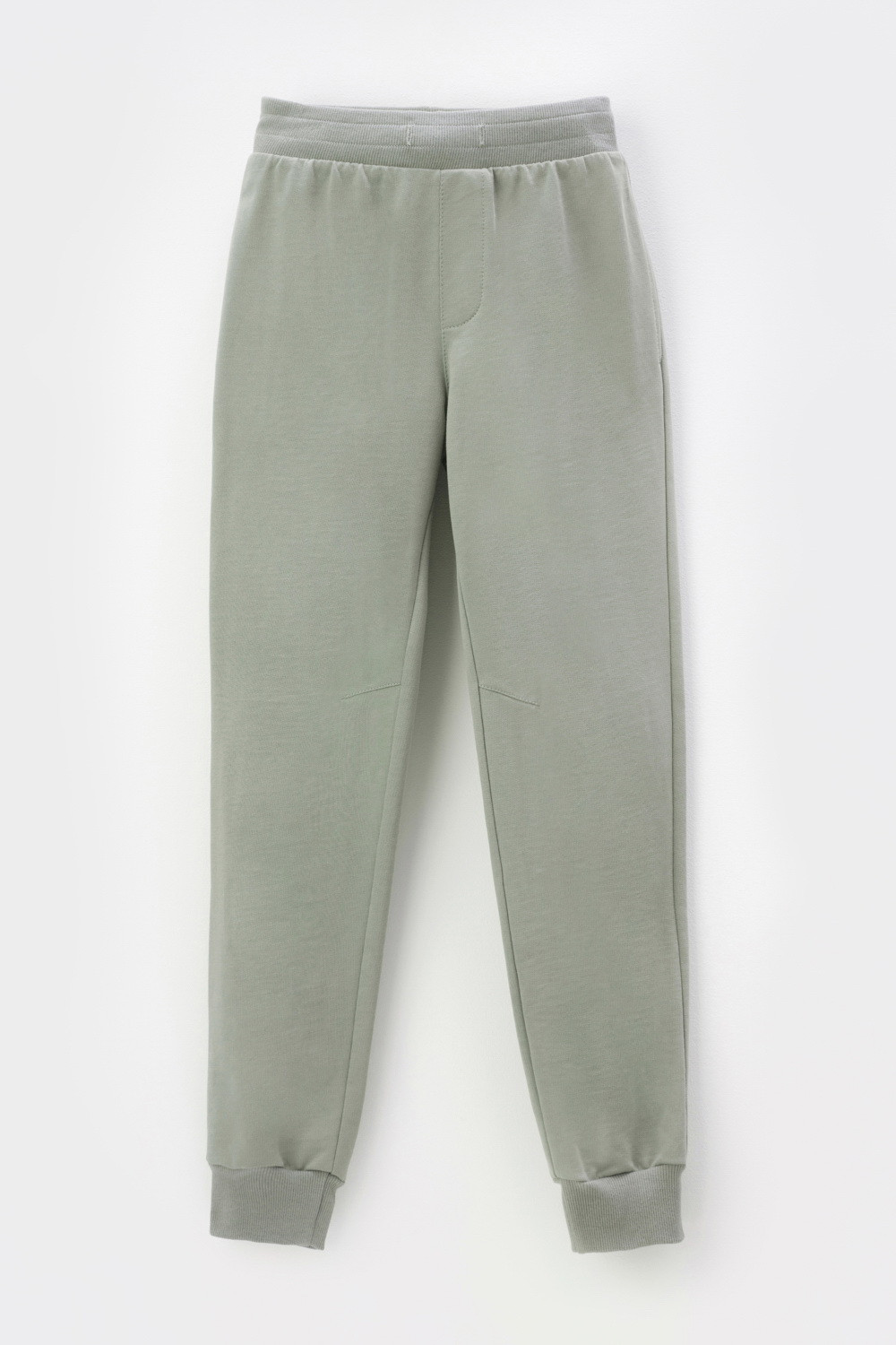 Трикотажные брюки для мальчика из петельчатого футера. В составе 80% натурального хлопка и 20% полиэстера, при этом полиэстер ввязан внутрь по особой технологии и не соприкасается с кожей. Эластичный пояс на резинке регулируется по ширине с помощью шнурка, по бокам два удобных кармана, внизу эластичные манжеты.