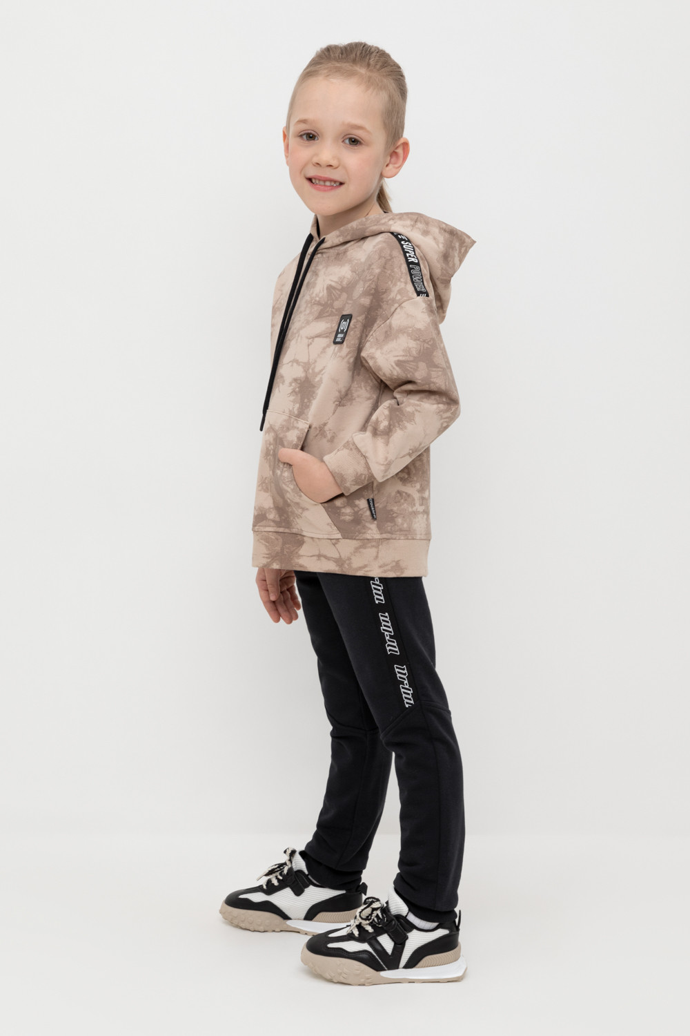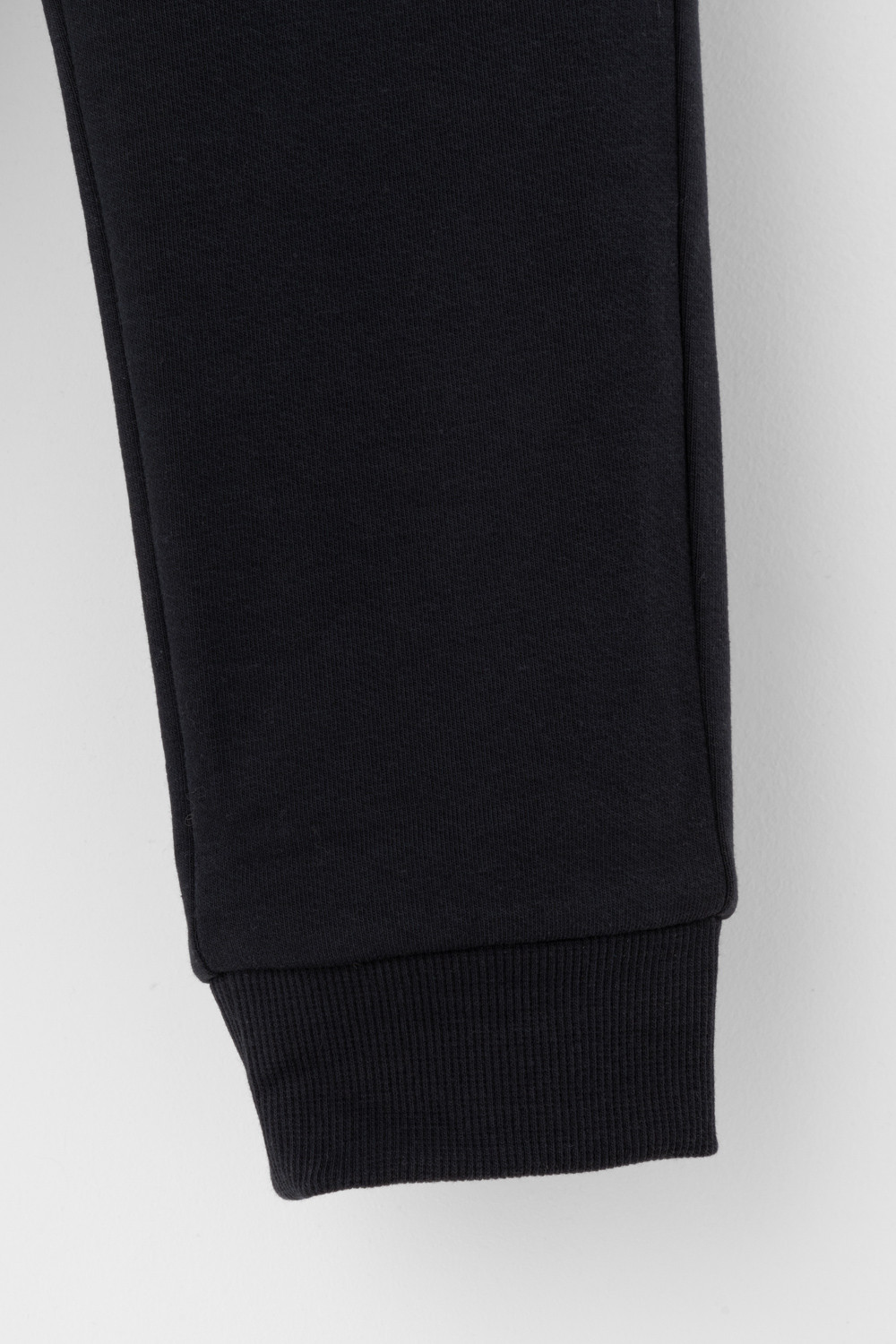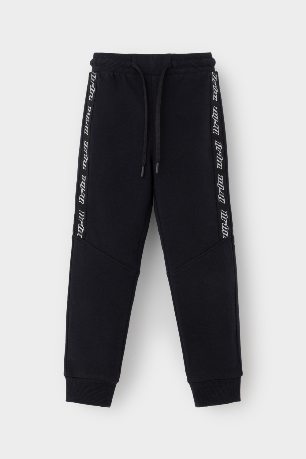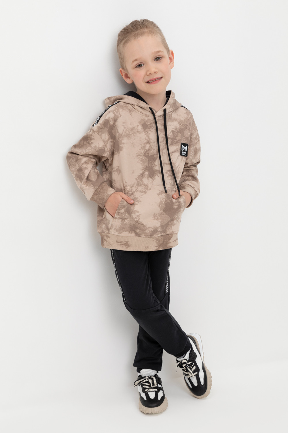 Трикотажные брюки с карманами для мальчика из петельчатого футера диагональ. Эластичный пояс на резинке регулируется по ширине с помощью шнурка, по бокам два удобных кармана, внизу эластичные манжеты.