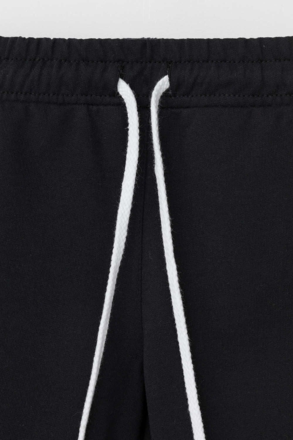 Свободные брюки для мальчика из петельчатого футера. Эластичный пояс на резинке регулируется по ширине с помощью шнурка, внизу эластичные манжеты.